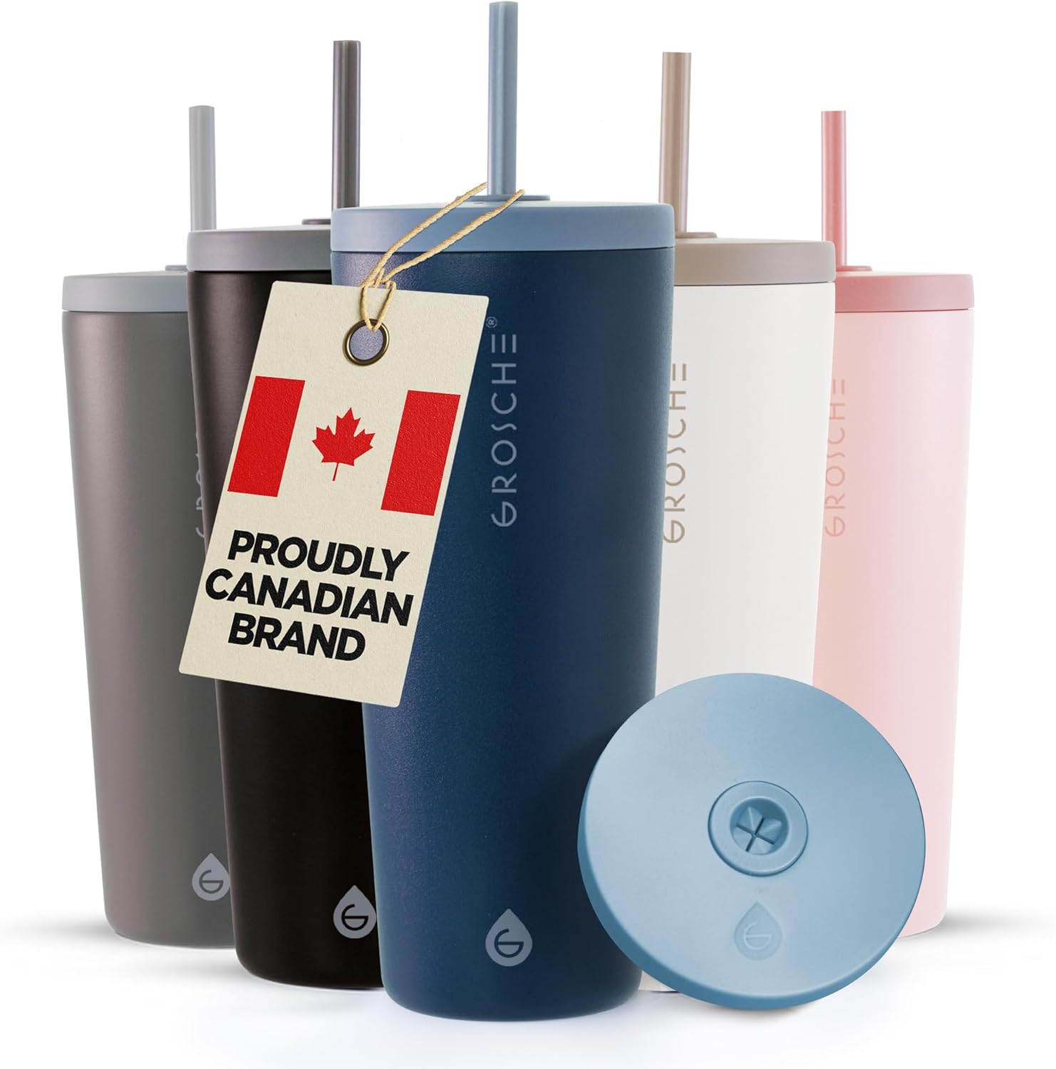 GROSCHE Jasper Insulated Stainless Steel Tumbler With Straw – Travel Cup with Lid, Extreme Insulation & Sleek Design, 23 oz - Blue