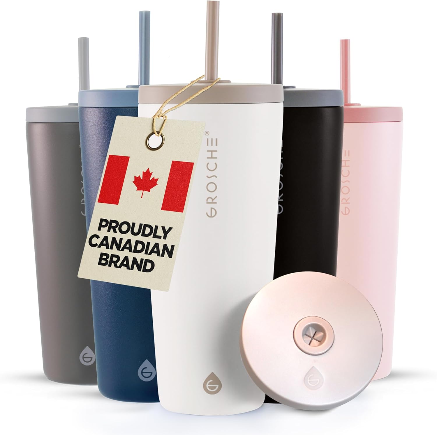 GROSCHE Jasper Insulated Stainless Steel Tumbler With Straw – Travel Cup with Lid, Extreme Insulation & Sleek Design, 23 oz - White