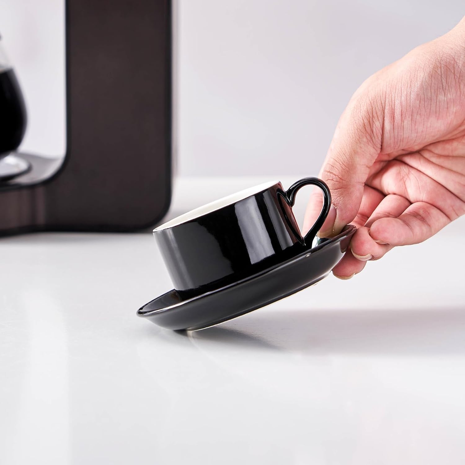 - 1.Elevate your kitchen experience with the MEICHU Espresso Cups Set. This set includes 4pcs 4 Ounce Espresso Cups with Saucers and Metal Stand, all in a classic black color. Perfect for people who enjoy coffee and conversation!