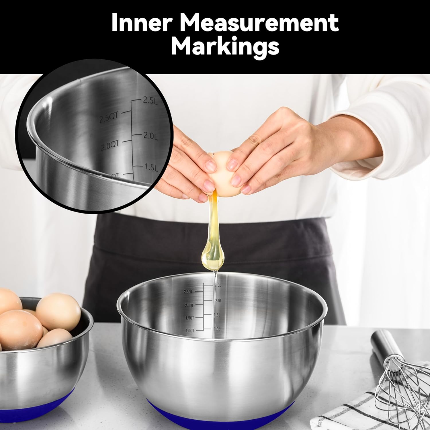 Stainless Steel Mixing Bowls with Lids – Set of 5 Large Nesting Metal Bowls for Kitchen, Baking, Cooking, Food Prep & Storage, Non-Slip Base, Dishwasher Safe,Blue
