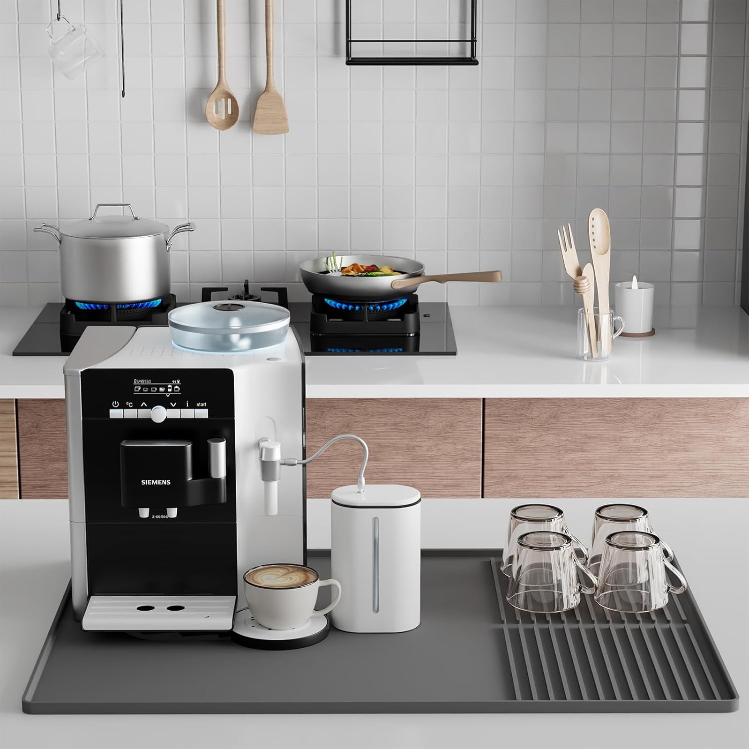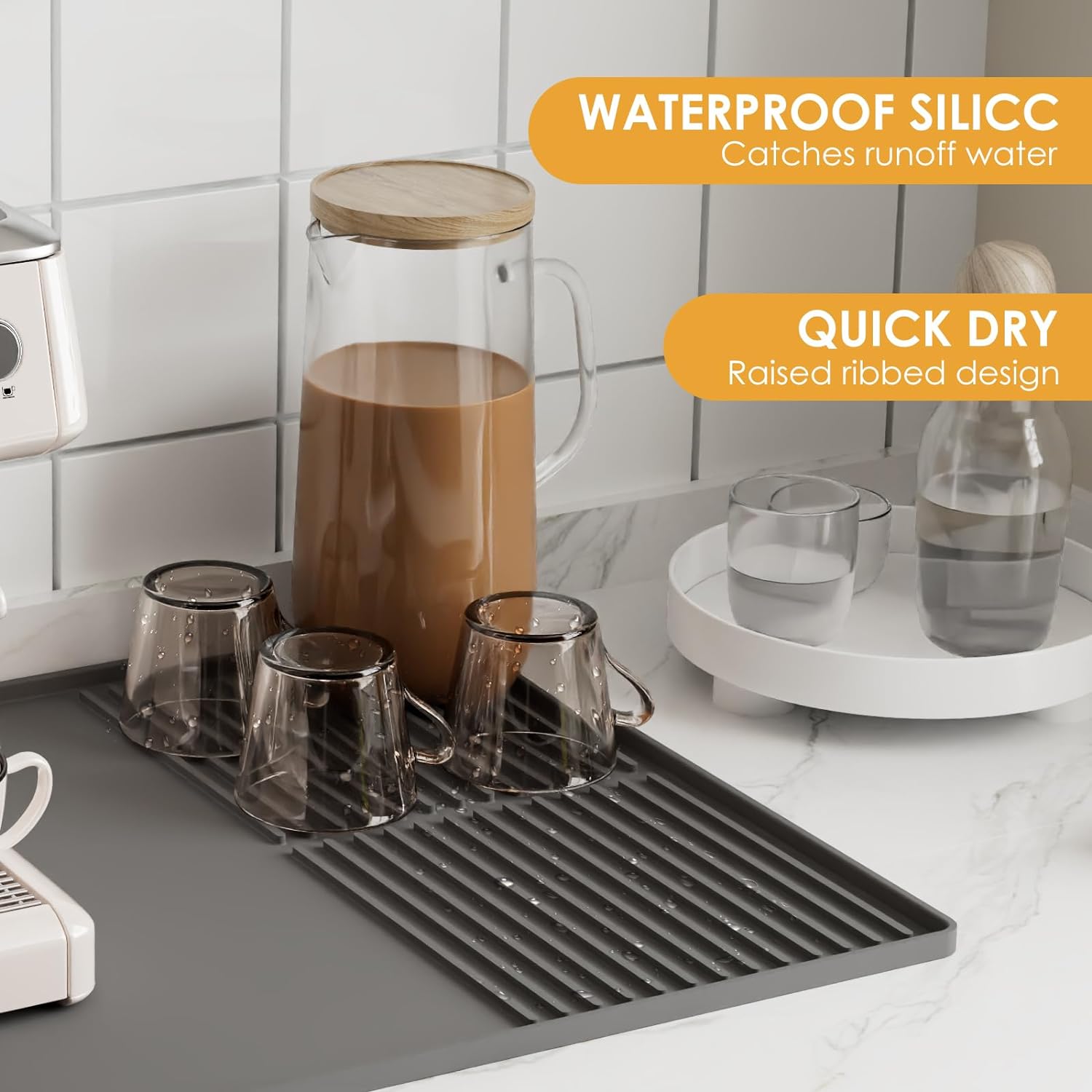 Silicone Coffee Mat with Raised Edges, 20'' X 12'', Bar Mat for Countertops, Fits Under Coffee Maker, Espresso Machine, Dish Drying Mat (GRAY)