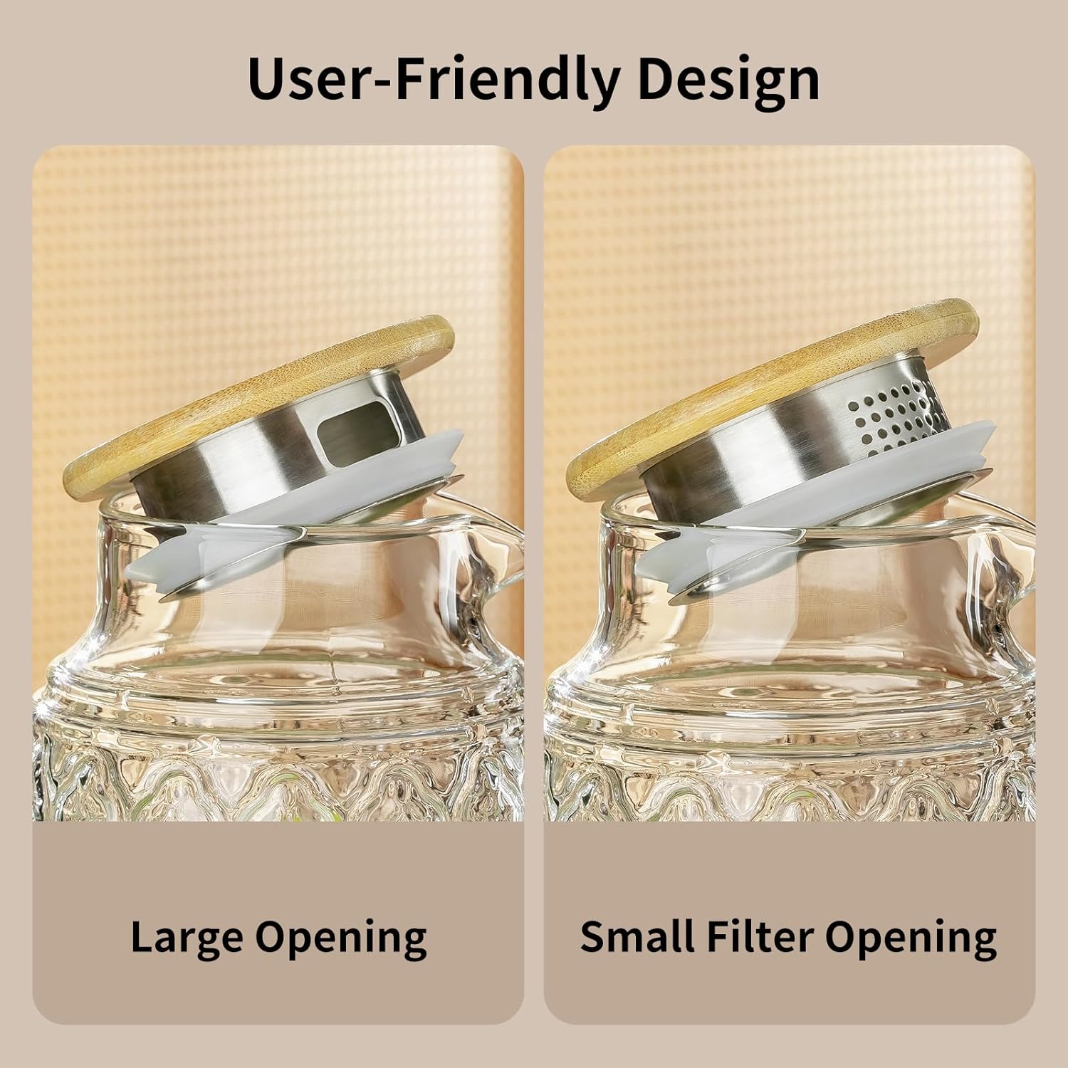 - 【VINTAGE AND DISTINCTIVE DESIGN】Buaic water pitcher is made of heat-resistant borosilicate glass,which can withstand temperatures from -20°C ~150°C/-4°F~302°F.Its lead-free and BPA-free construction makes it a healthier choice in your daily life for iced tea, margaritas, juice, coffee, sangrias, wine, etc. Vintage and distinctive design works with traditional or casual place settings.It's not only a pitcher, but also a beautiful decoration on the table