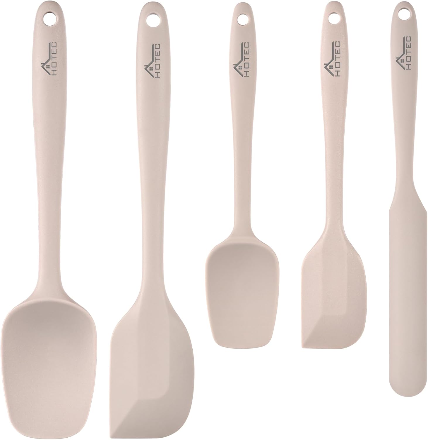 HOTEC 600℉ Heat Resistant BPA-Free Silicone Rubber Spatula Set,Kitchen Cooking Spatulas, Baking, Mixing for Non Stick Cookware, Dishwasher Safe, Set of 5, Khaki
