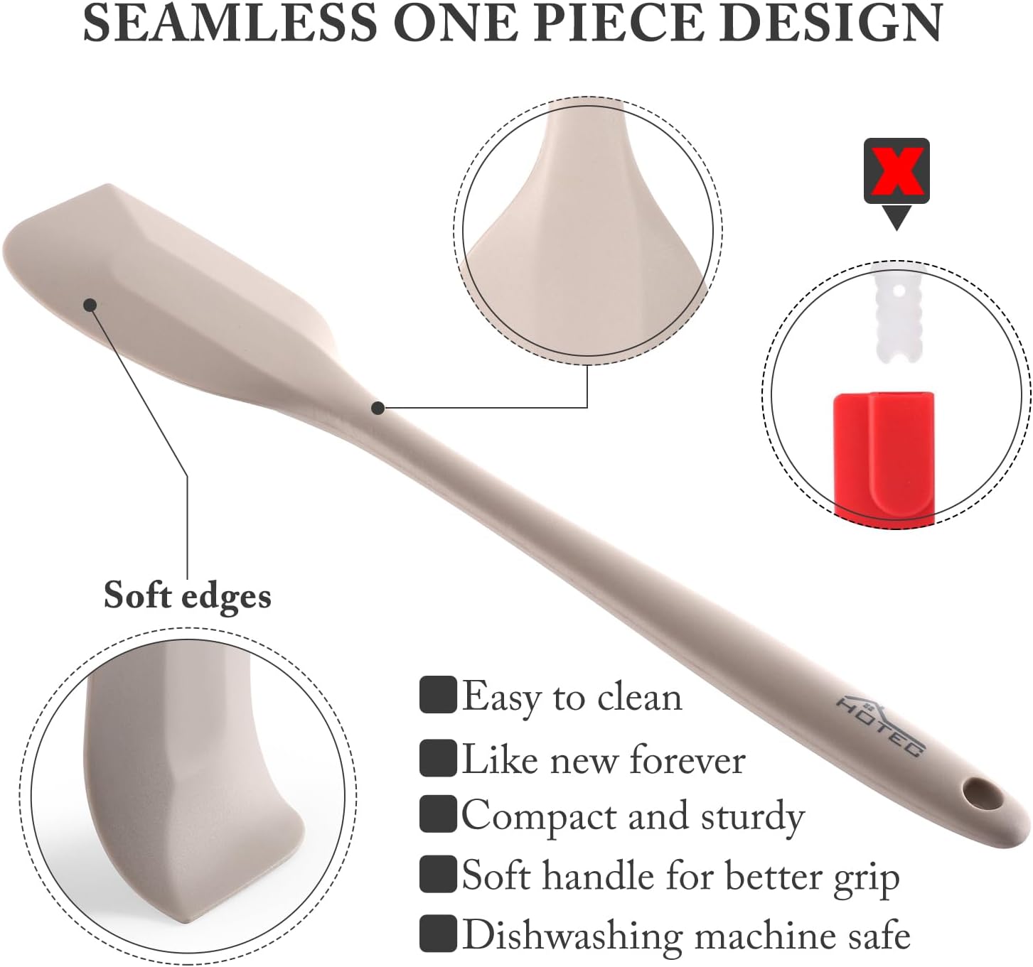- [ SEAMLESS ONE PIECE DESIGN] :Seamless one piece design ,easy to clean ,and Non-Stick ,Soft Handle for better grip ,Noiseless & Harmless ,Perfect for baking ,cooking and mixing etc.,