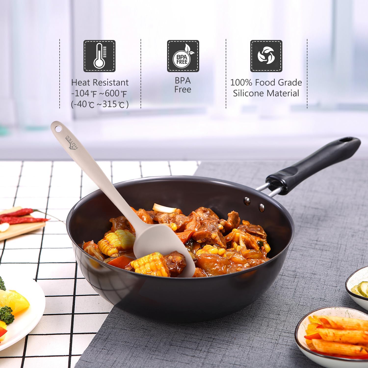 - [ HEAT RESISTANT ] : Temperature Resistant -104℉~600℉(-40℃~315℃). The average heat resistance of a typical silicone spatula is between 400 to 600 degrees. Anything less isn’t recommended. Also can be as a good Gift .Quality Life ,Safety First .