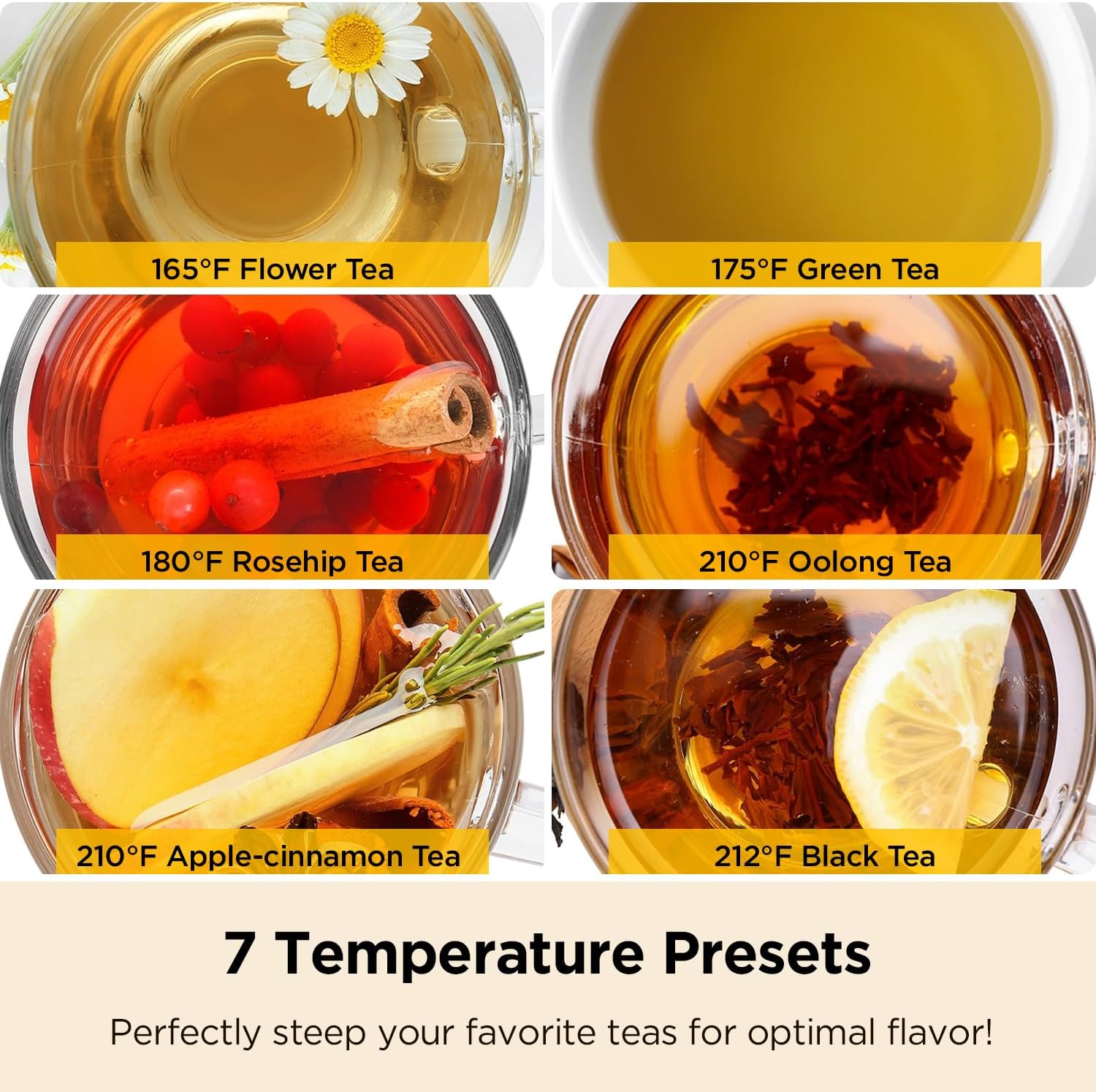 - 7 Temperature Ranges: Choose from 104°F to 212°F depending on your preferences