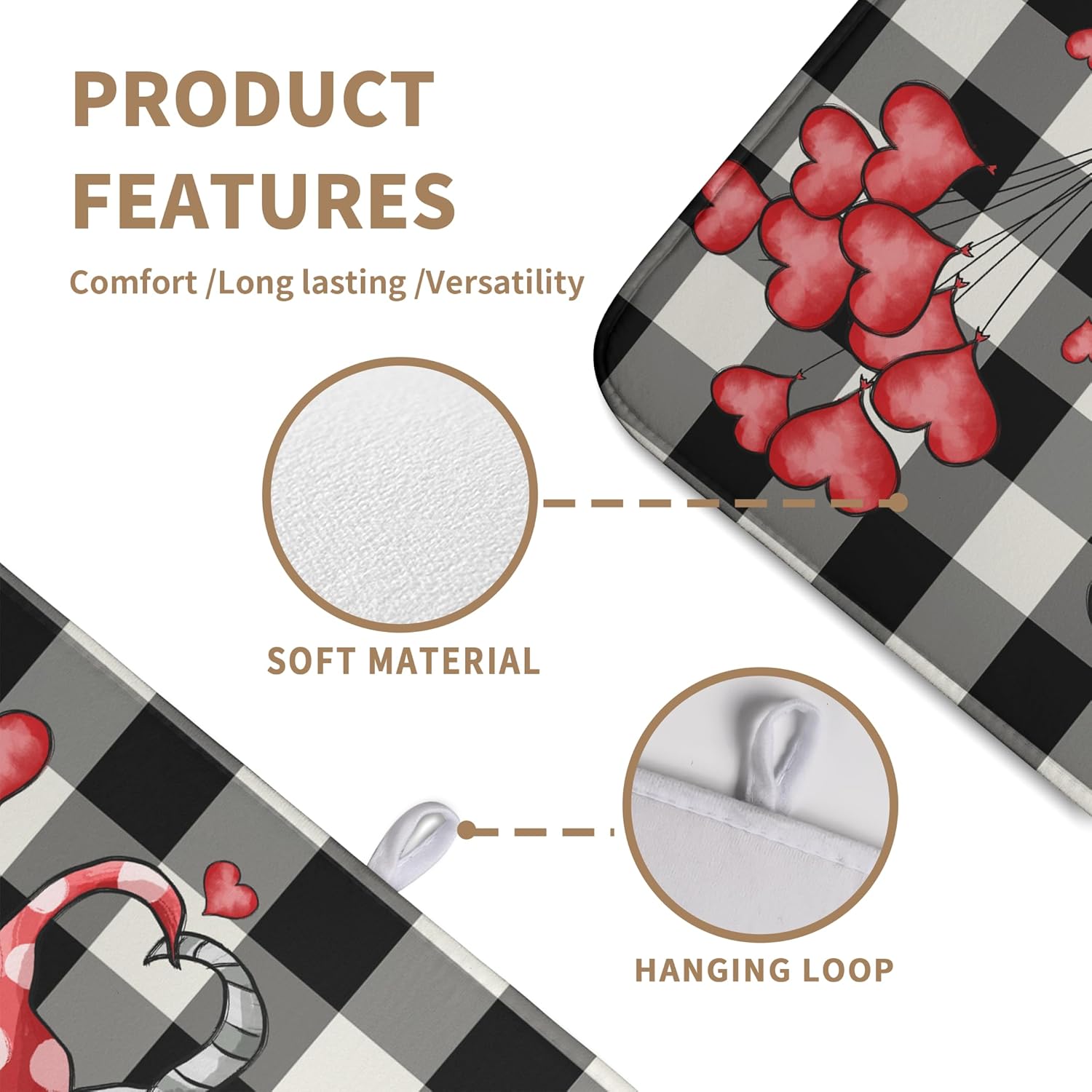 - [Quick Absorption]: Made of absorbent material, our Valentines Day kitchen mat Plaid Hearts Gnomes Love dish dryer mat for kitchen absorbs water stains quickly, keeping your table top dry and clean, avoiding water stains and leaks, providing you with a pleasant and dry dining or working experience.