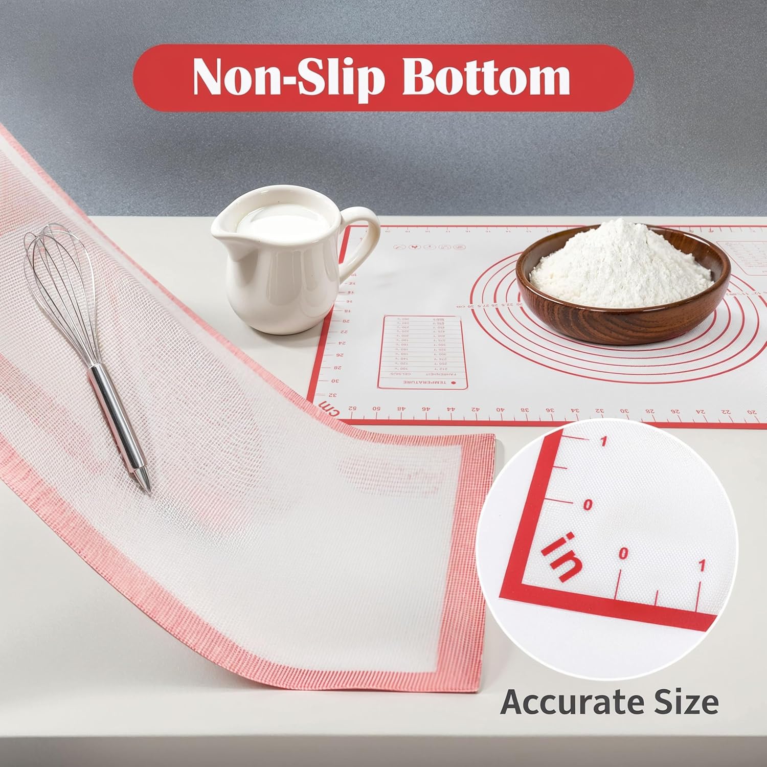 - 【Larger Size Options】:We have extra large silicone mats for you to choose from, longer and larger sizes to provide more surface area for your baking needs, making your bread making easier and more convenient.