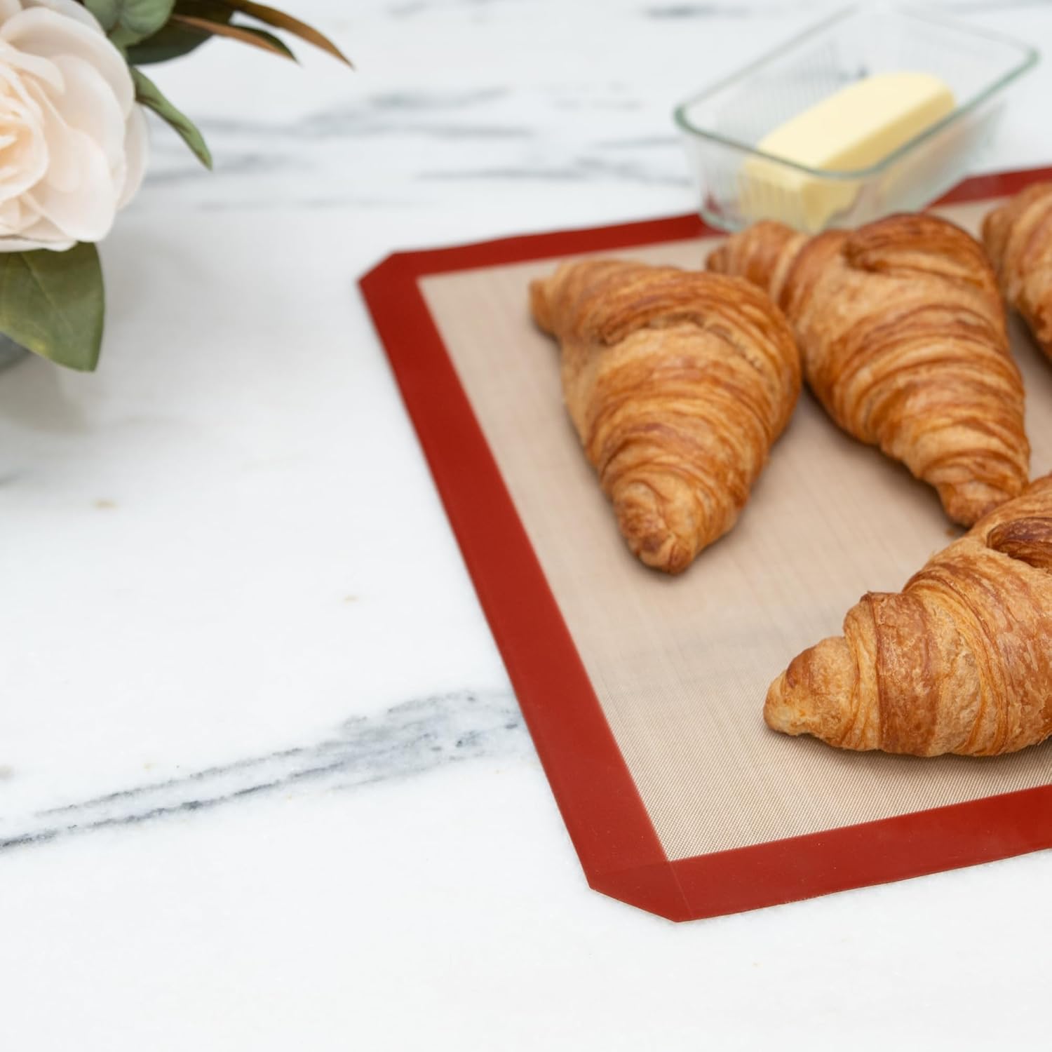 - Versatile: Full-size baking mats with red border designed for full-size cookie sheets, perfect for baking cookies, pastries, and more.