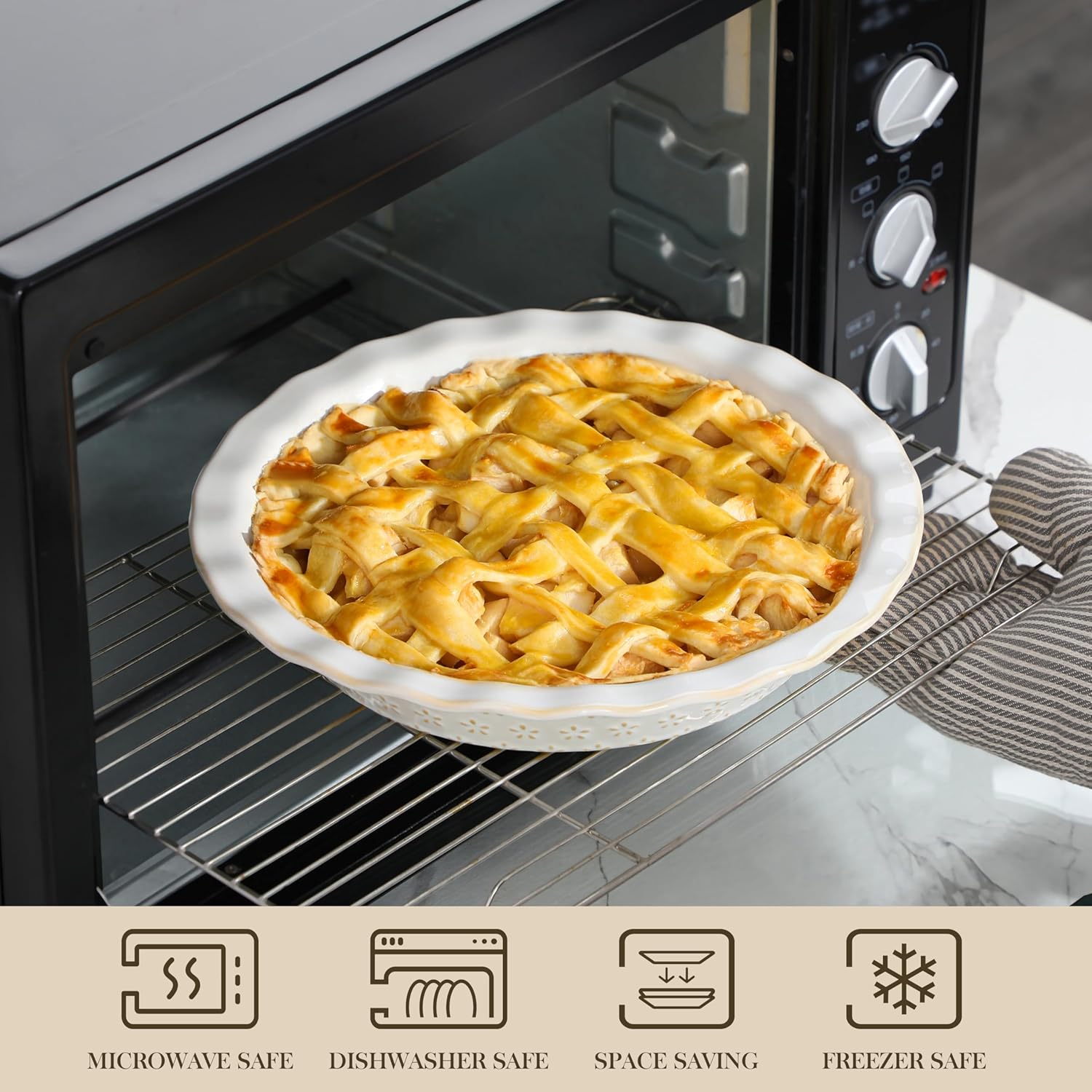 - 【Heat Distribution & Retention】-- Crafted from high-quality stoneware, non-toxic and lead-free, 482°F high temperature firing make stoneware pie pan is durable and sturdy, and ensure even heat distribution for perfectly cooked crusts golden pies every time. Also, stoneware pie dish retains warmth for longer, ensuring your pies stay warm from oven to table, making every bite as delicious as the first.