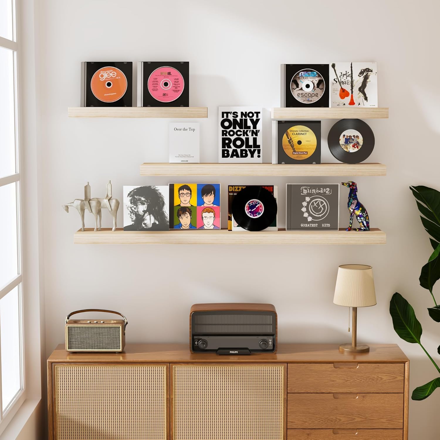- Premium Wooden Floating Shelves -Unlike others, they are beautifully-finished, fantastic-smelling solid pine,and they are handcrafted out of finest solid pine wood measuring 48" x 8" x 1.38",revealing its own character of knots and natural wood grain, making each ledge a little different but equally stunning.