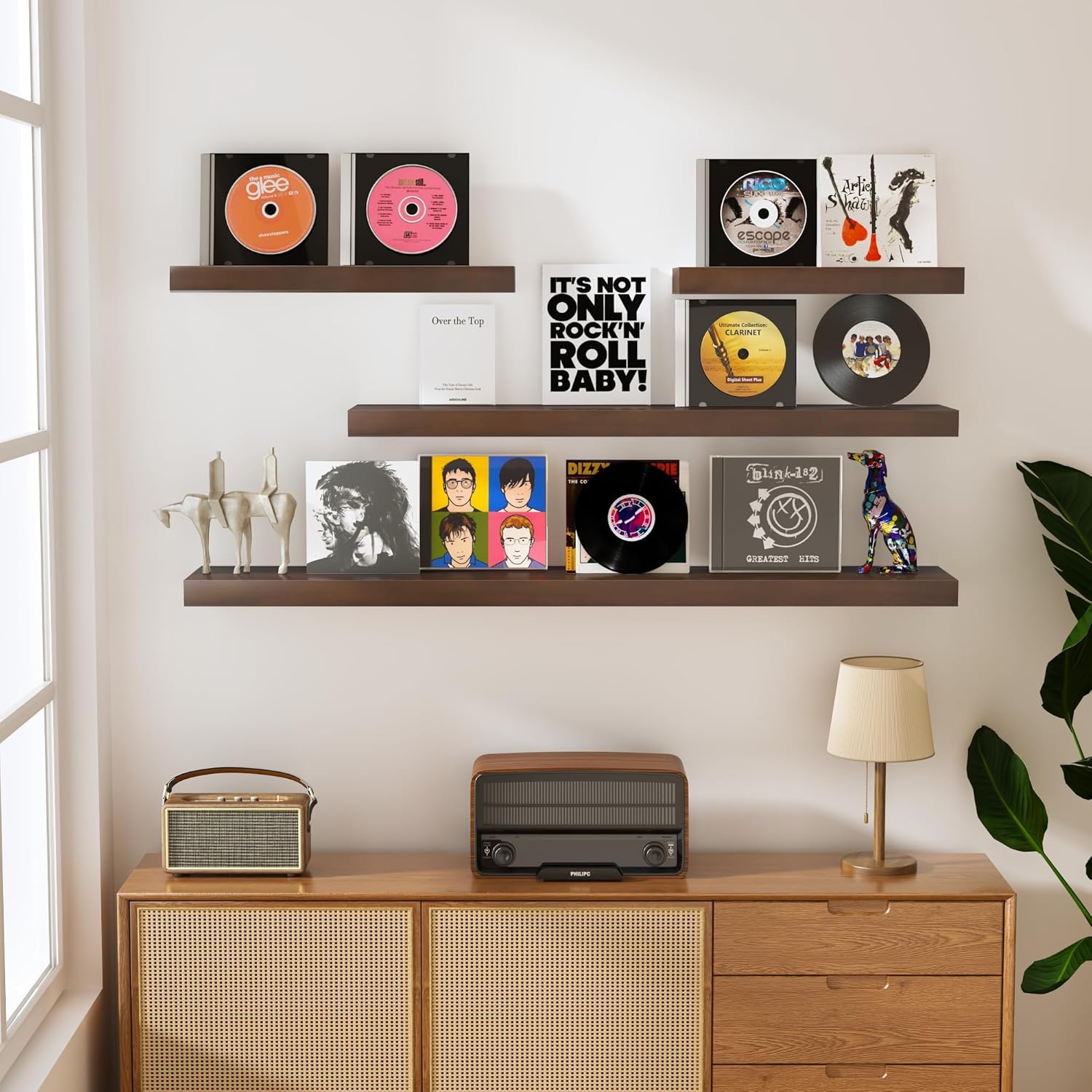 Vivelove Solid Wood Rustic Floating Shelves 36 Inch Long, 8 inch Deep Floating Wall Shelves for Living Room Kitchen Bedroom Bathroom Office, Farmhouse Home Decor, 1 Pack, Dark Walnut, Pine Wood