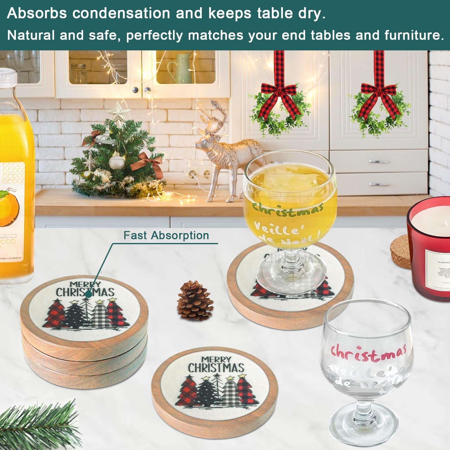 Christmas Tree Coasters for Drinks, Minacun Absorbent Coaster Set of 5, White Elephant Gifts, Secret Santa Gifts, Xmas Decor, Drinks Coasters for Coffee Tabletop Protection, 4.3 Inches
