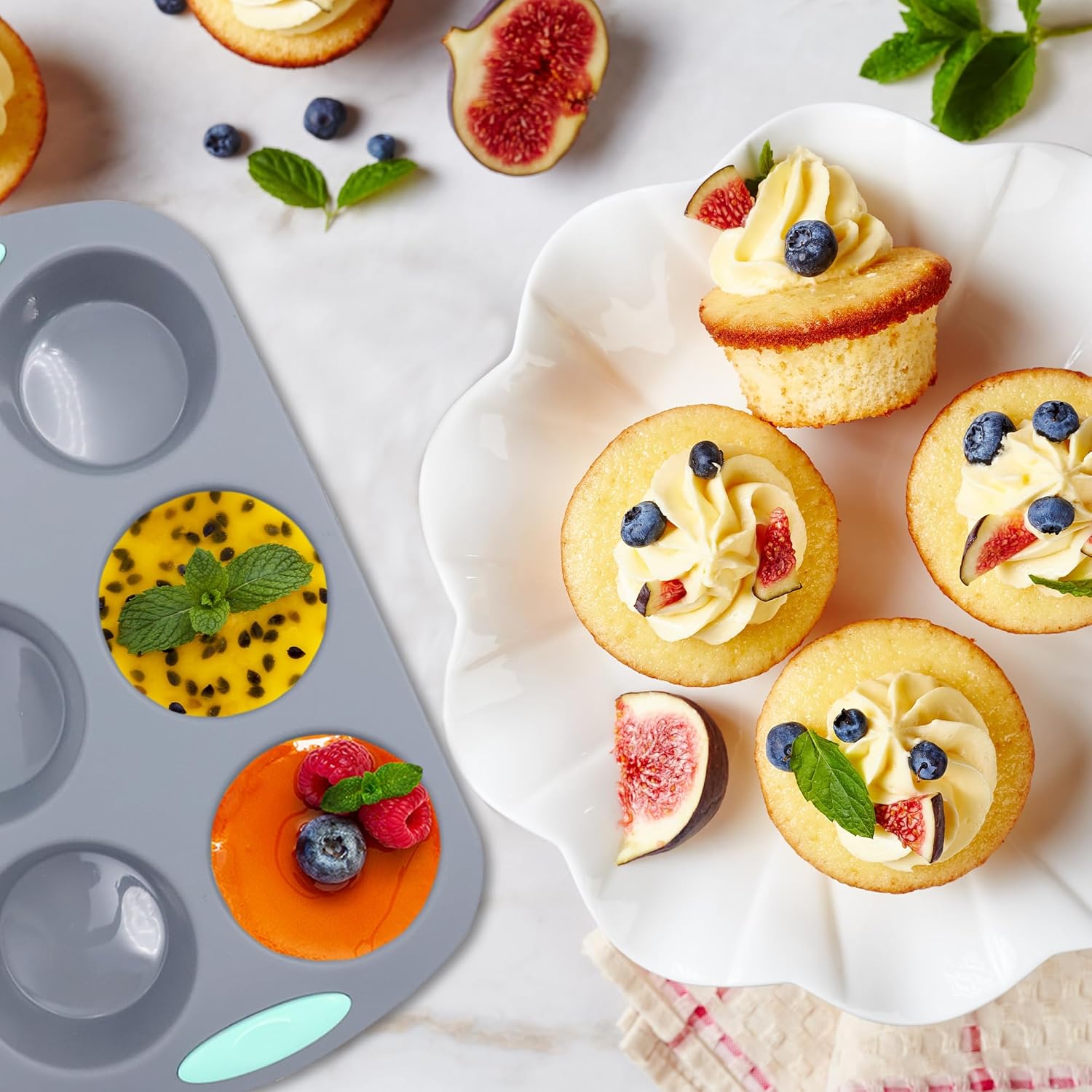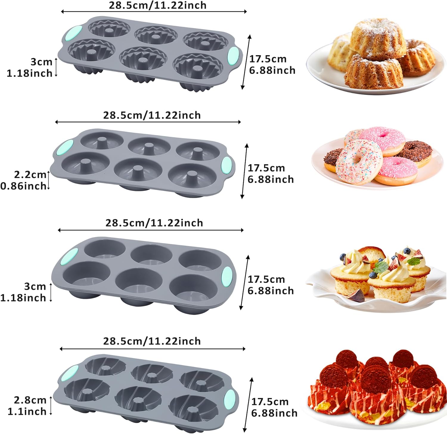 Tongjude 8 Pieces Silicone Donut Pans, Nonstick Silicone Muffin Pans, Heat Resistant Kitchen Oven Baking Cups, Dishwasher Safe and Microwave Safe, Grey