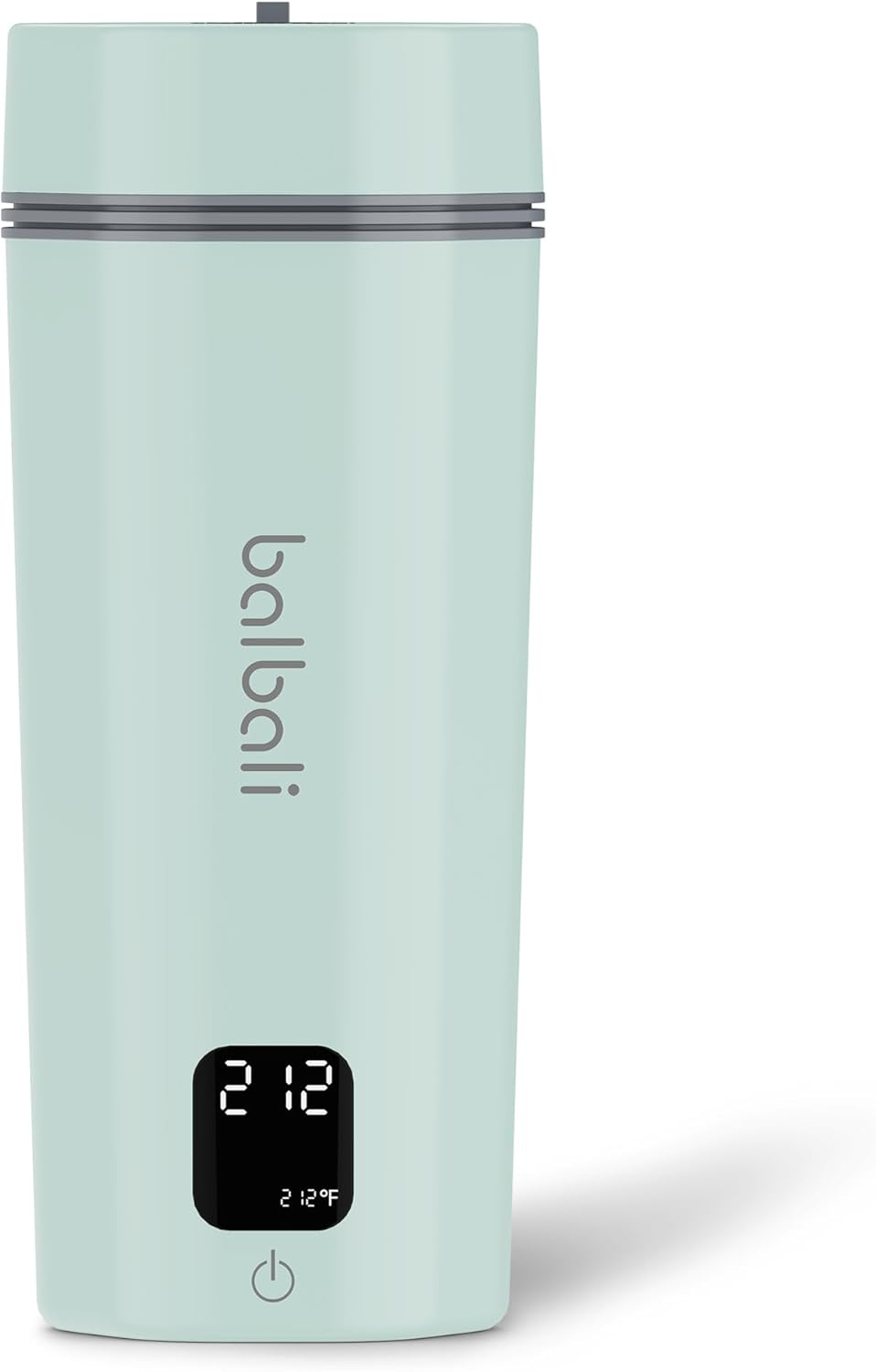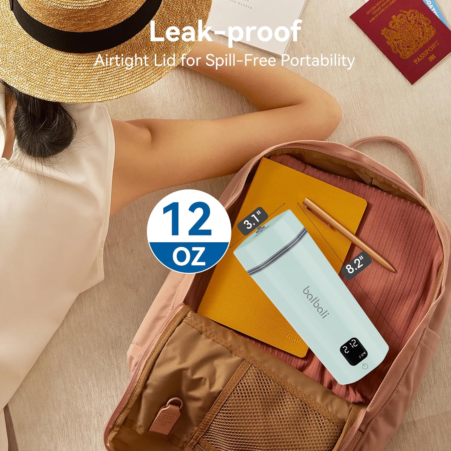 balbali Portable Tea Kettle for Travel 100-240V Dual Voltage - 6 Preset Electric Portable Water Heater for Boiling - Self Heating Cup/Thermos - 12oz Hot Water Boiler/Heater/Warmer - Green