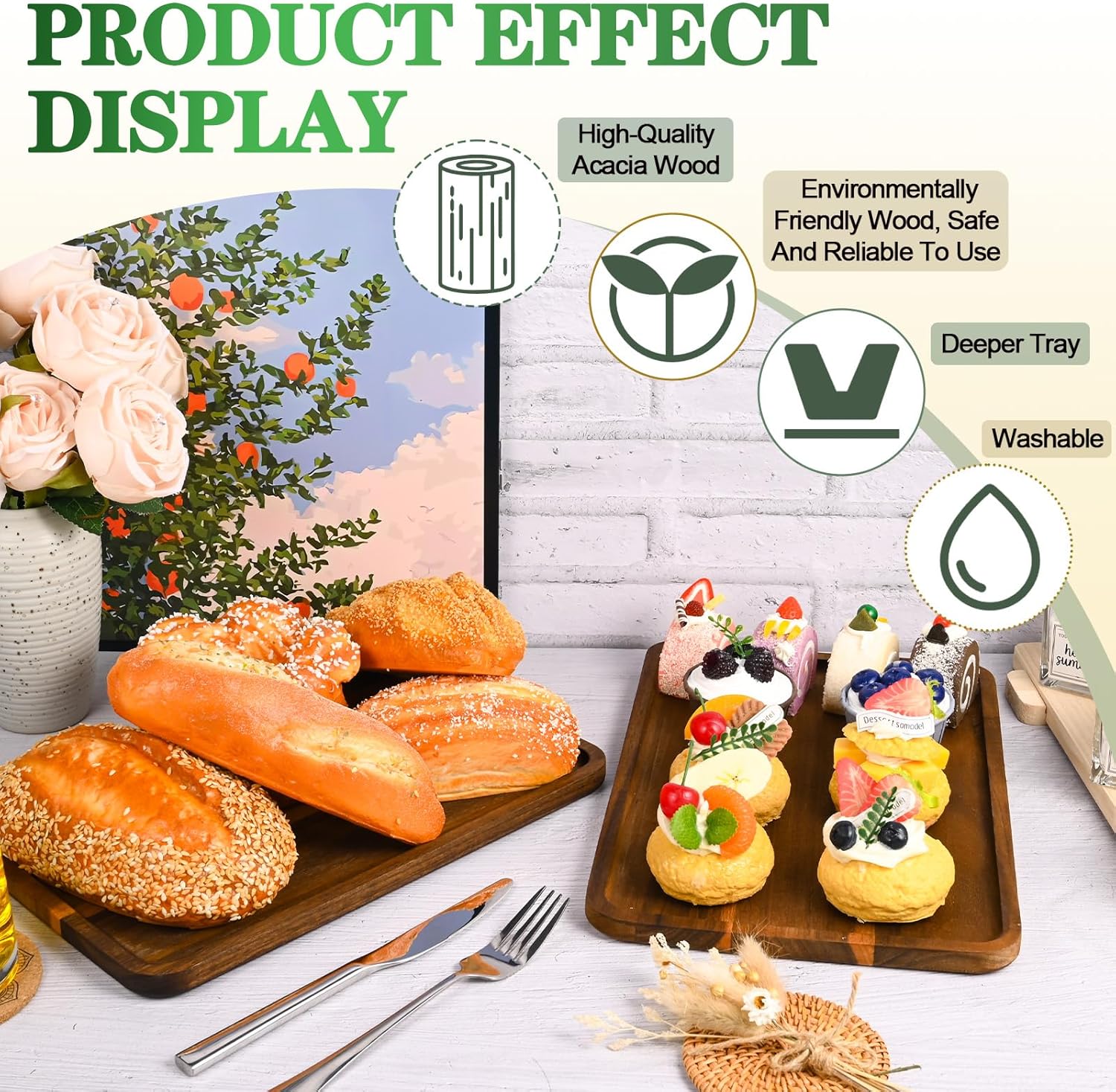 - LARGE SIZE DESIGN: Includes 2 pieces 13 x 9 x 0.6 Inches rectangular wooden serving trays. This wood serving board is enlarged for a larger area to hold more food, perfect for serving fruits, cakes, breads, cookies, sushi, desserts, vegetables, charcuterie, appetizers and more!