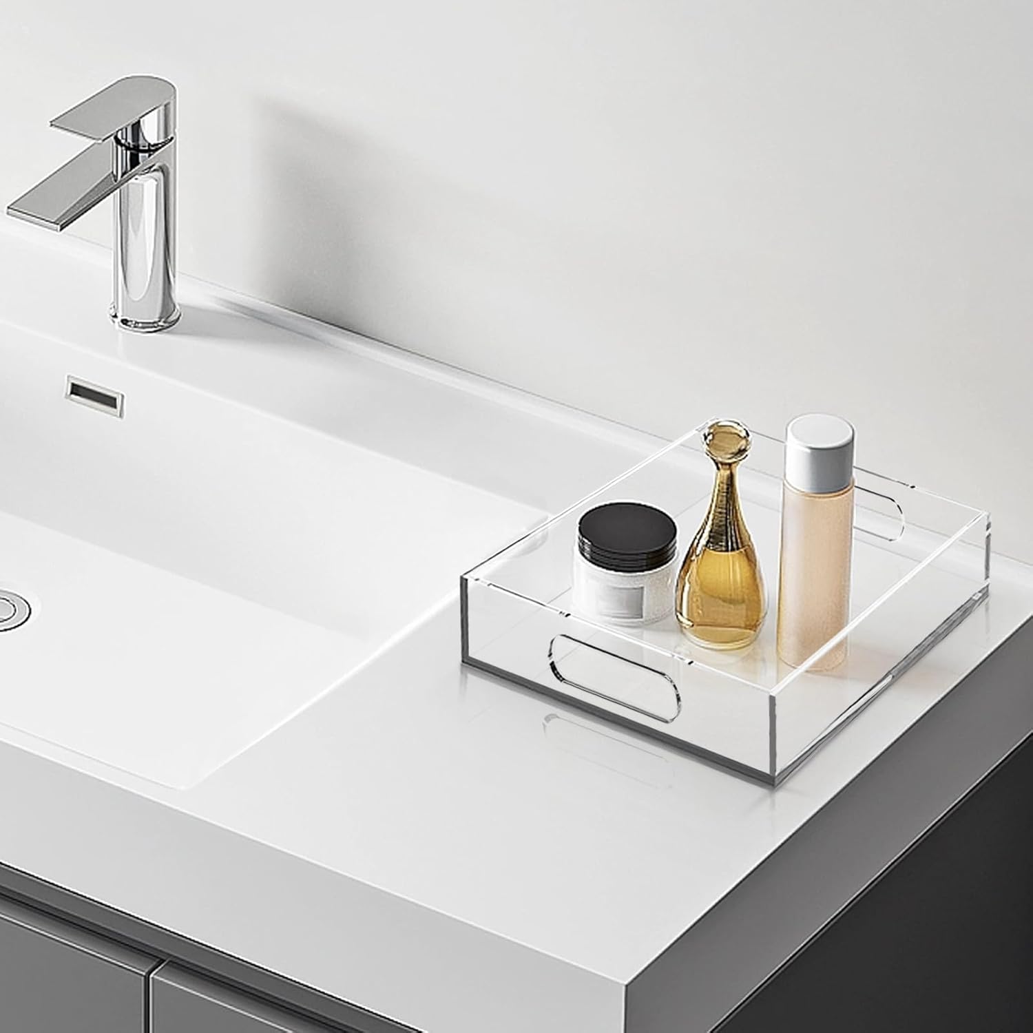 Acrylic Organizers Tray, Acrylic Tray for Ottoman, Serving Tray with Handle, Lucite Tray Organizer for Bench, Coffee Table Countertop, Kitchen, Bathroom, Living Room, Powder Room