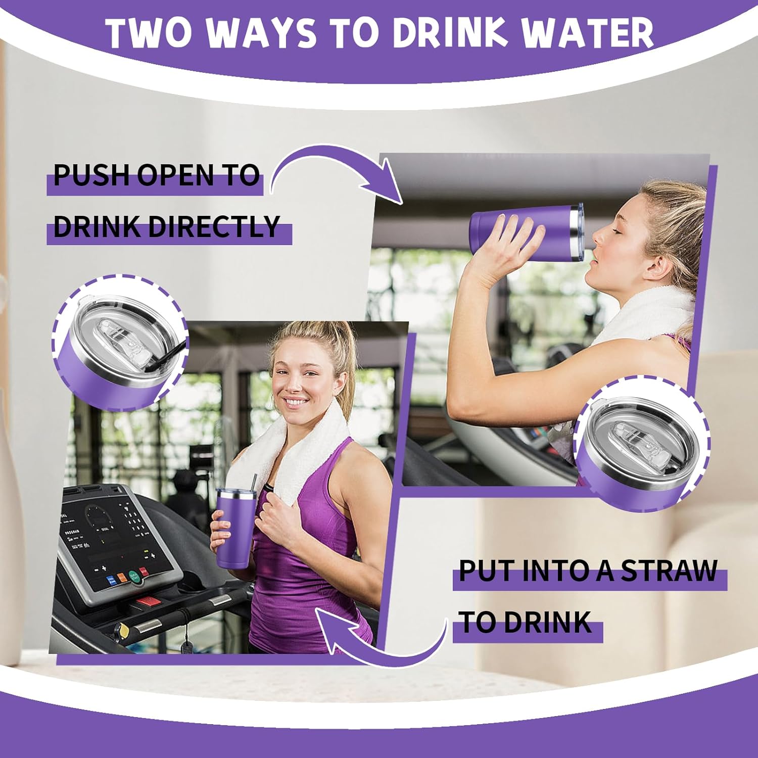 20 oz Tumbler with Lids and Straws, Stainless Steel Insulated Coffee Tumbler, Double Wall Vacuum Insulated Travel Mug Cup, Leakproof Thermal Coffee Cup for Hot and Cold Drinks (purple)