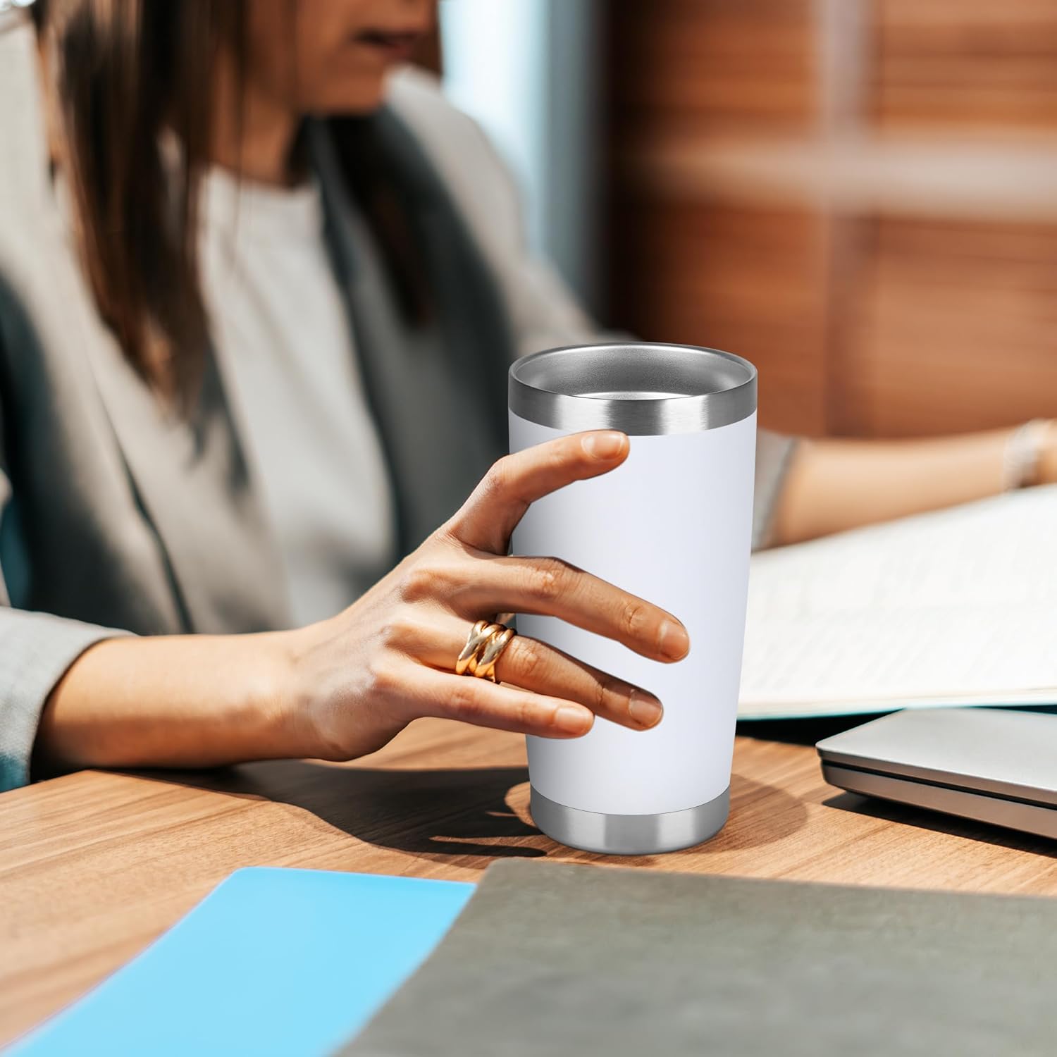 20 oz Tumbler Stainless Steel Tumblers Bulk with Lid Double Wall Insulated Coffee Tumbler Cups for Hot & Cold Drinks Powder Coated Travel Coffee Tumbler Mug Metal (White, 6 pack)