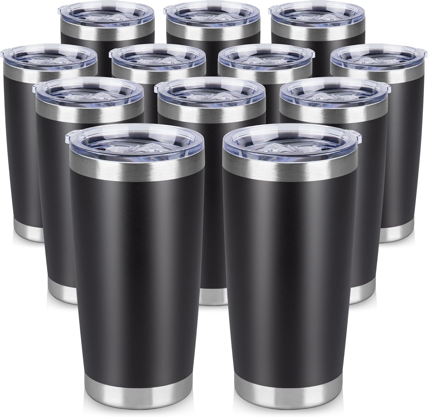 20 oz Tumbler Stainless Steel Tumblers Bulk with Lid Double Wall Insulated Coffee Tumbler Cups for Hot & Cold Drinks Powder Coated Travel Coffee Tumbler Mug Metal (Black, 12 pack)