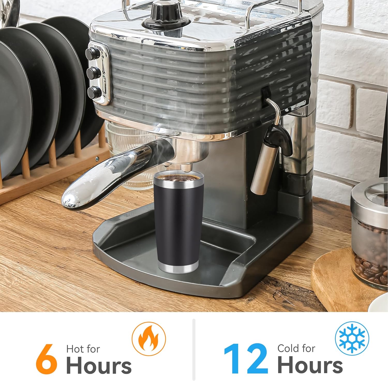 - Insulated Coffee Tumbler: Our travel tumbler features double-walled vacuum insulation technology that ensures your beverage stays hot for up to 6 hours and cold for up to 12 hours. This makes it the right choice for those who want to enjoy their favorite drinks at the perfect temperature, no matter where they are.