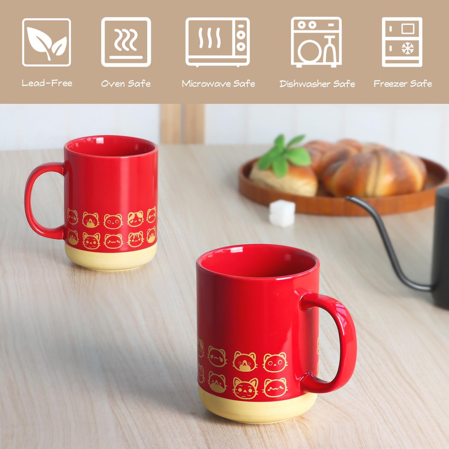 Cat coffee mug-16oz Ceramic Coffee Mugs for Women and Men-Cat gifts for cat lovers-Cute Coffee and Tea Mug-Red