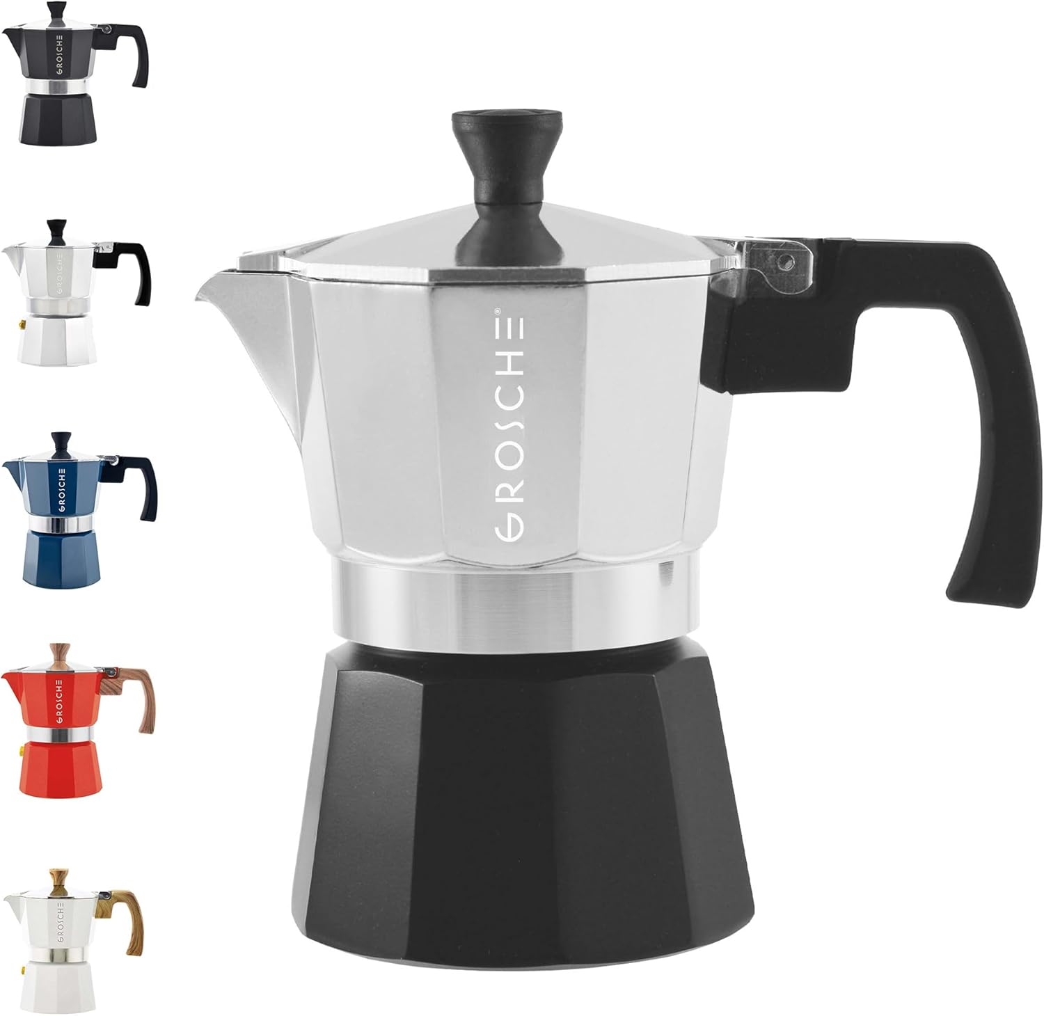 GROSCHE Milano Moka Pot Stovetop Espresso Maker - Italian Espresso Greca Coffee Brewer Percolator | 3 Cup, Tuxedo