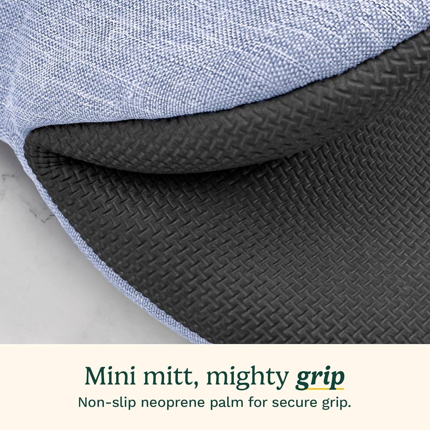 Cuisinart Mini Oven Mitts – 5.5” x 7” Heat-Resistant Kitchen Mitts for Oven with Non-Slip Neoprene Palm, Cotton Filling, and Fabric Loop – Durable Oven Mitt Set for Cooking & Baking (Light Blue)