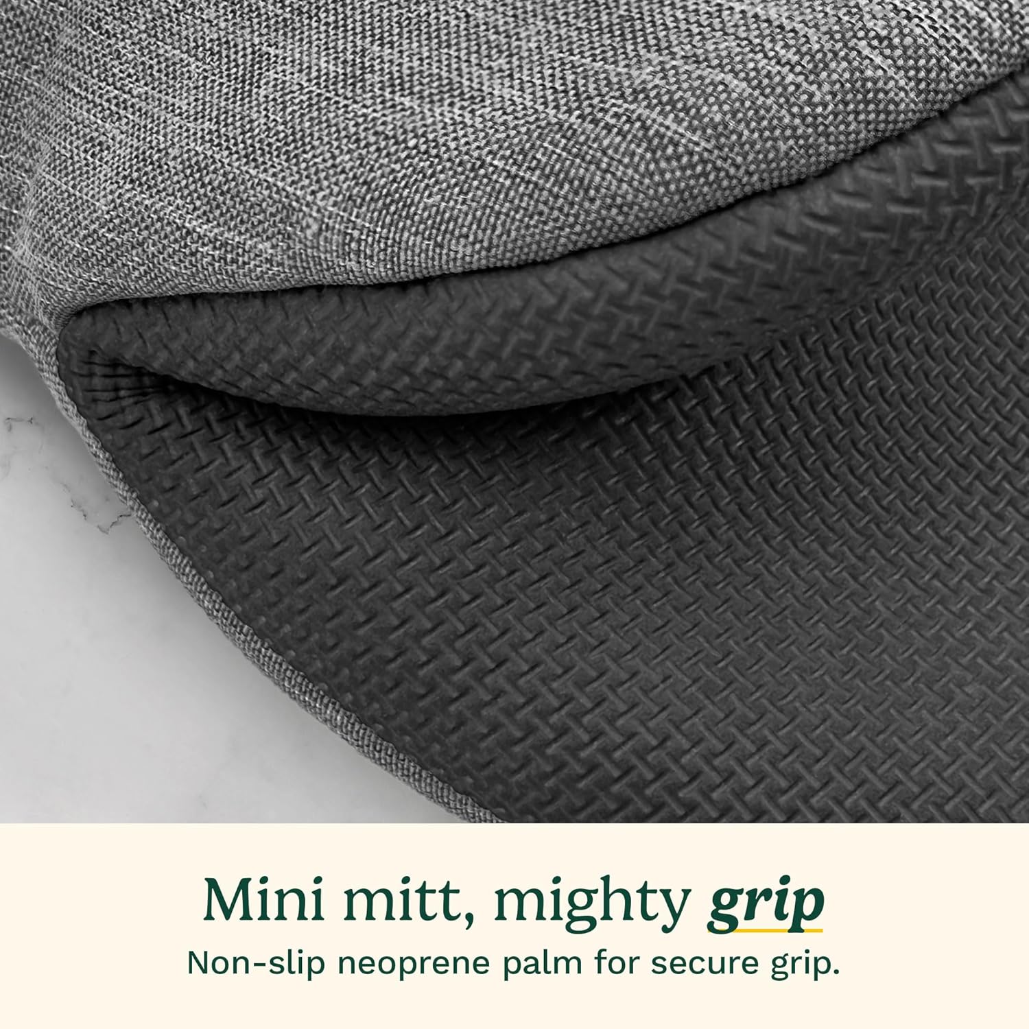 - OPTIMAL HEAT PROTECTION: These mini oven mitts are designed with a non-slip neoprene palm that offers secure grip and high heat resistance (up to 350 degrees). Whether you're pulling a hot dish from the toaster oven or handling a sizzling pan, these mitts provide essential protection for all your kitchen cooking and baking needs.