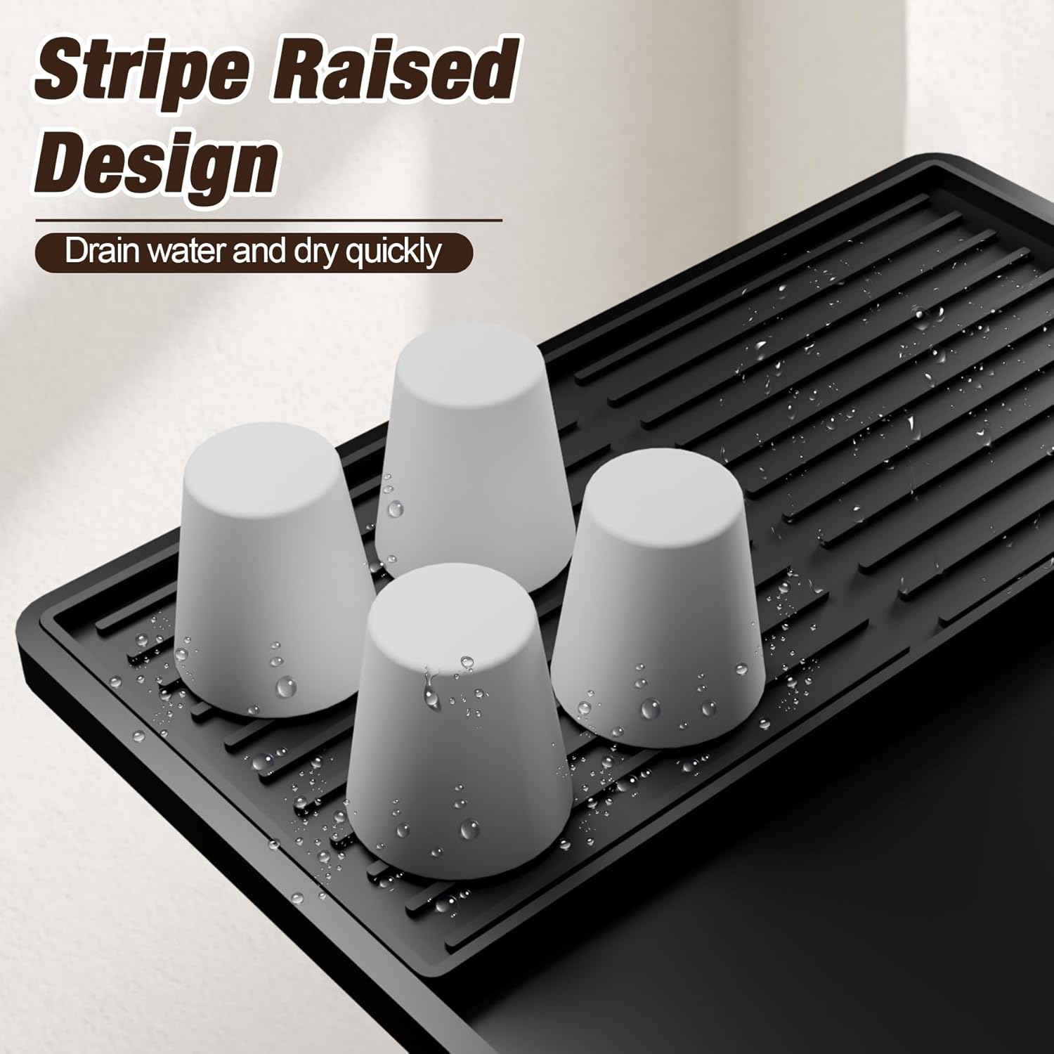 Premium Dish Drying Mat & Removable Coffee Bar Mat - 24x16 Inch Quick-Dry Silicone Mat, Heat/Waterproof Non-Slip Protector for Sink, Espresso Machine, Dishwasher Safe & Cabinets (Black)