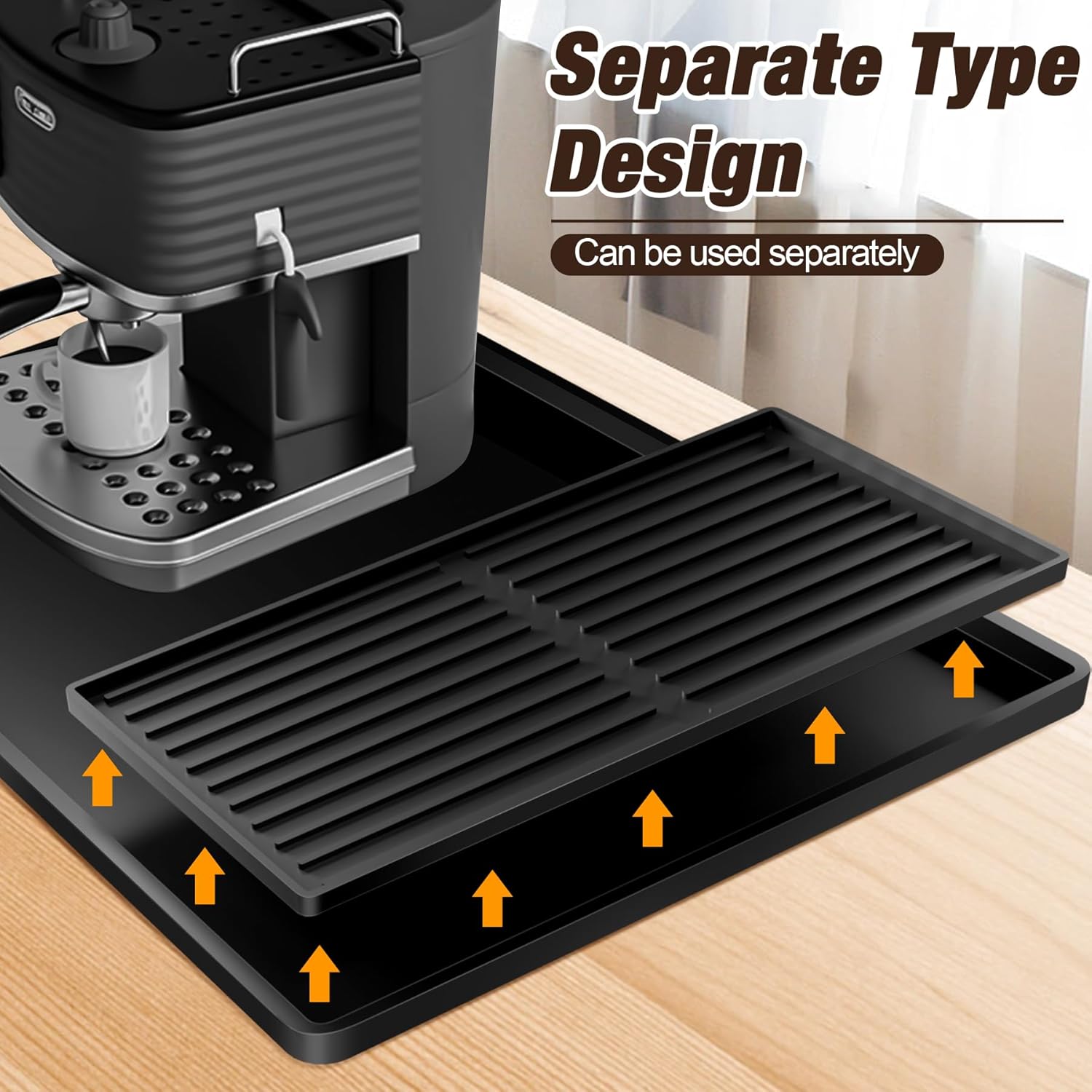 - Easy-Clean & Sanitary: Non-porous silicone resists coffee/oil stains. Detach smaller mat to clean under espresso machines, while main mat can be wiped or rinsed without detergent.