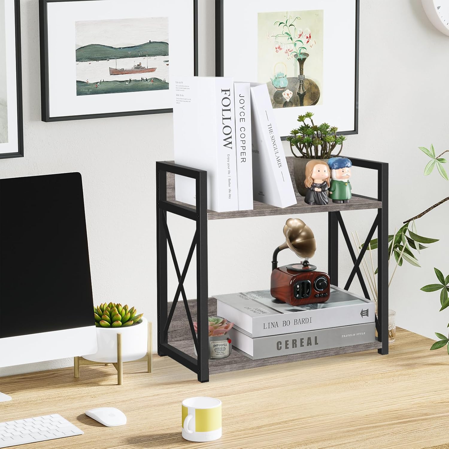 YINMIT Countertop Shelf Organizer,Coffee Bar Accessories,Spice Rack,Coffee Counter Shelf,2 Tier Coffee Organizer Station for Mugs,Cups,Cream,Syrup(Rustic Grey, Large)