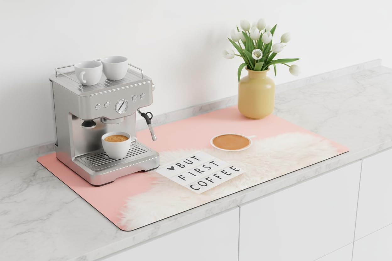 - MULTI-PURPOSE: Elevate your coffee bar experience with our Multi-Use espresso mat. Its versatile design makes it perfect for drying dishes, and glassware, or even as a protective surface for coffee bar accessories. Streamline your kitchen tasks with a single, versatile solution.