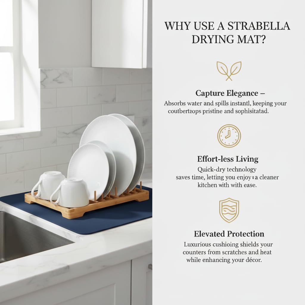 - EXCEPTIONAL ABSORBENCY: Experience the superior absorbent power of our Dish Drying Mat, designed to quickly soak up moisture from freshly washed dishes, ensuring a faster and more efficient drying process.
