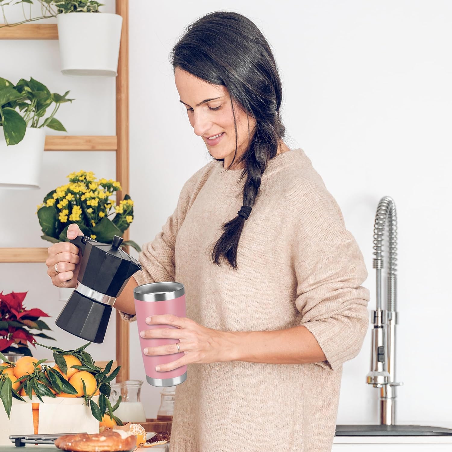 20 oz Tumbler Stainless Steel Tumblers Bulk with Lid Double Wall Insulated Coffee Tumbler Cups for Hot & Cold Drinks Powder Coated Travel Coffee Tumbler Mug Metal (Rose Pink, 6 pack)