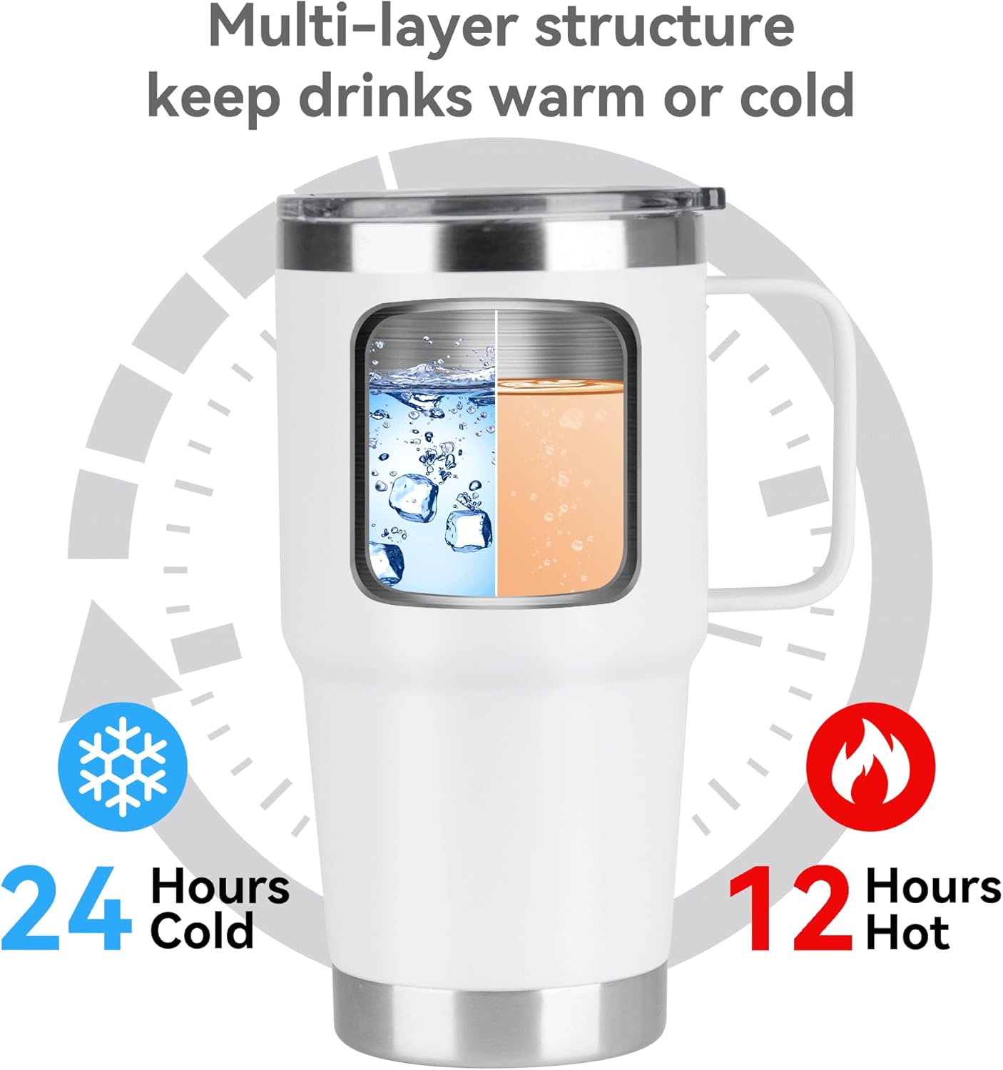 - Double Wall Vacuum Insulated Tumbler:Insulated tumbler is double-walled and vacuum insulated for up to 12 hours of heat retention and 24 hours of cold retention; It can keep your drinks at the ideal hot and cold temperature