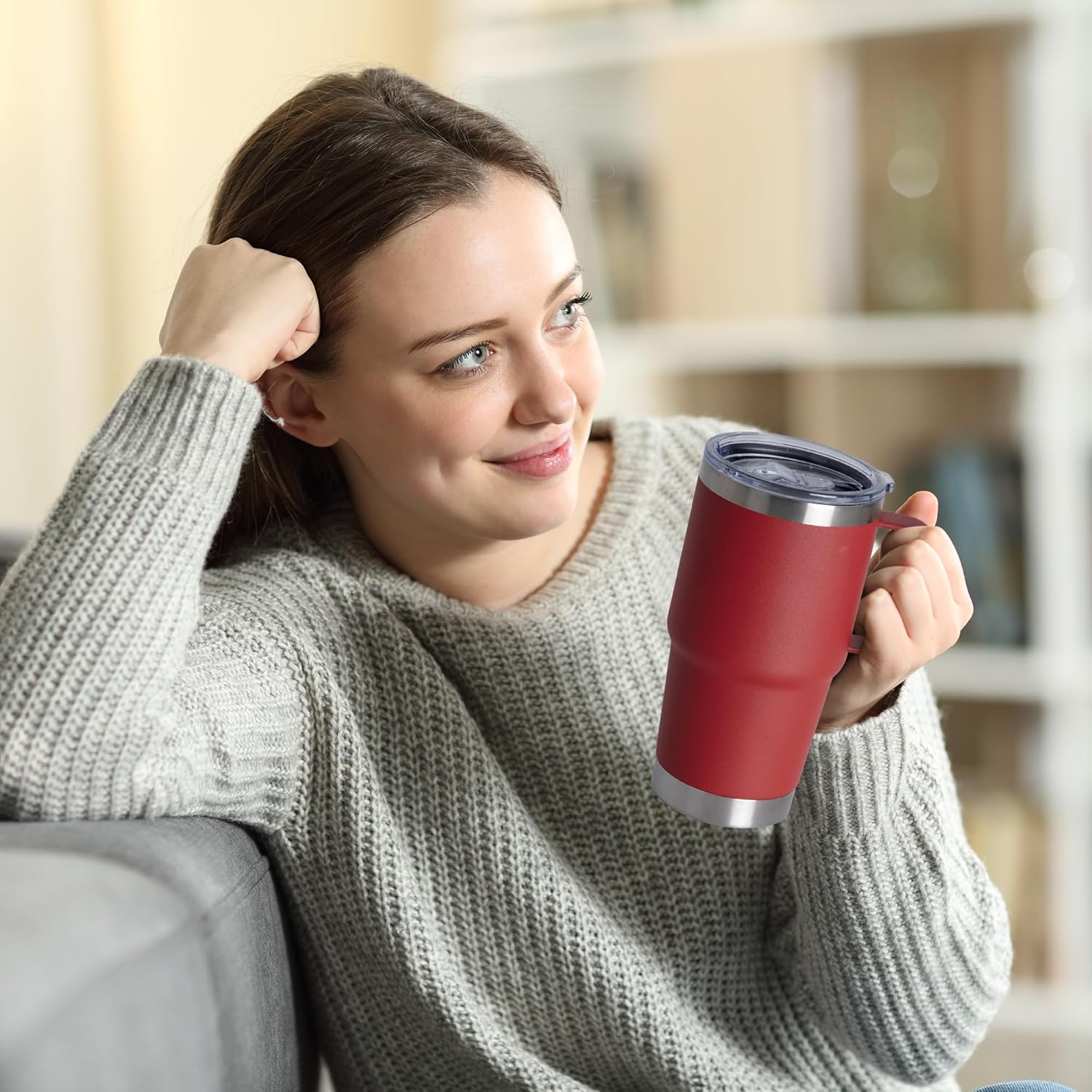 - Stainless Steel Tumblers with Handle:The 20oz coffee mug is made of thickened 304 stainless steel, liner of coffee mug will not produce any taste and will not rust.The cup comes with a sturdy welded handle for easy grip and ease of use