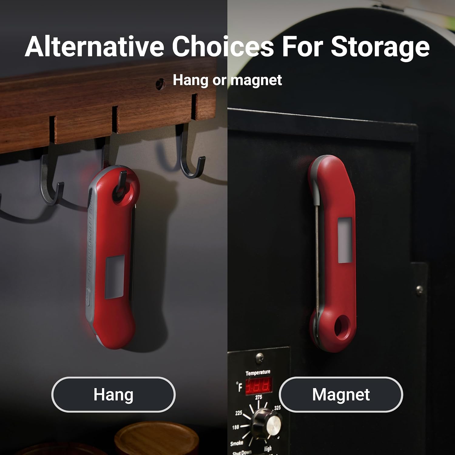 - Easy Grab & Use: With both magnet and hang design, you can either stick the thermometer on the side of the refrigerator or hang it on a hook.