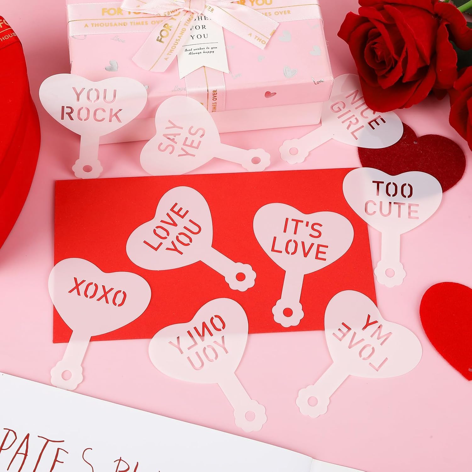 - Valentine's Day Theme Design: These letter happy Valentines day stencils are designed with all kinds of sweet words, including "XOXO", "MY LOVE" and "MISS YOU", which ideally fit the theme of Valentine's Day and add romance and warmth to your handicrafts