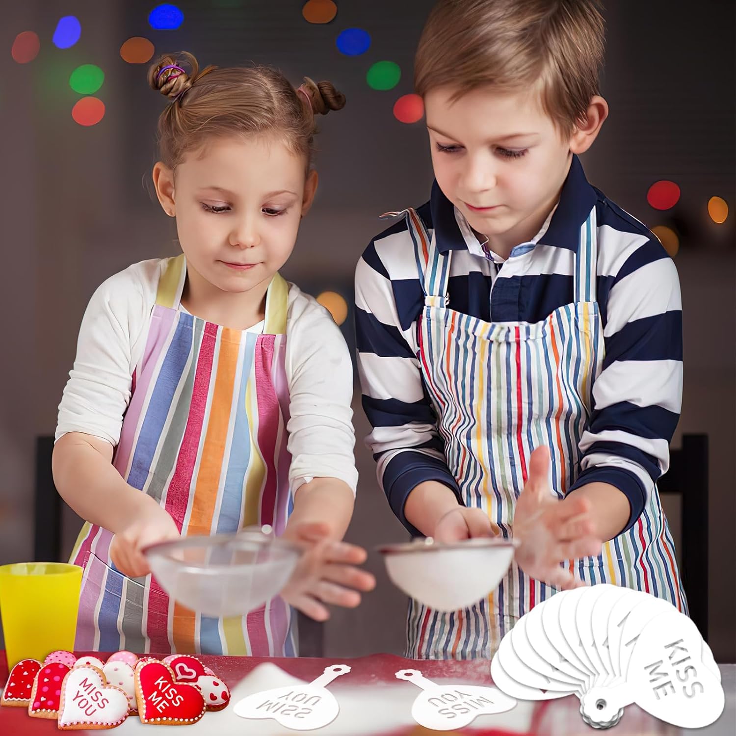 - Easy to Use: You only need to cover the conversation hearts cookie stencils on coffee, biscuits or cakes, then draw on the object you want to decorate with a brush or icing sugar, and then take off the cookie stencils to make beautiful baked goods and save your time and energy