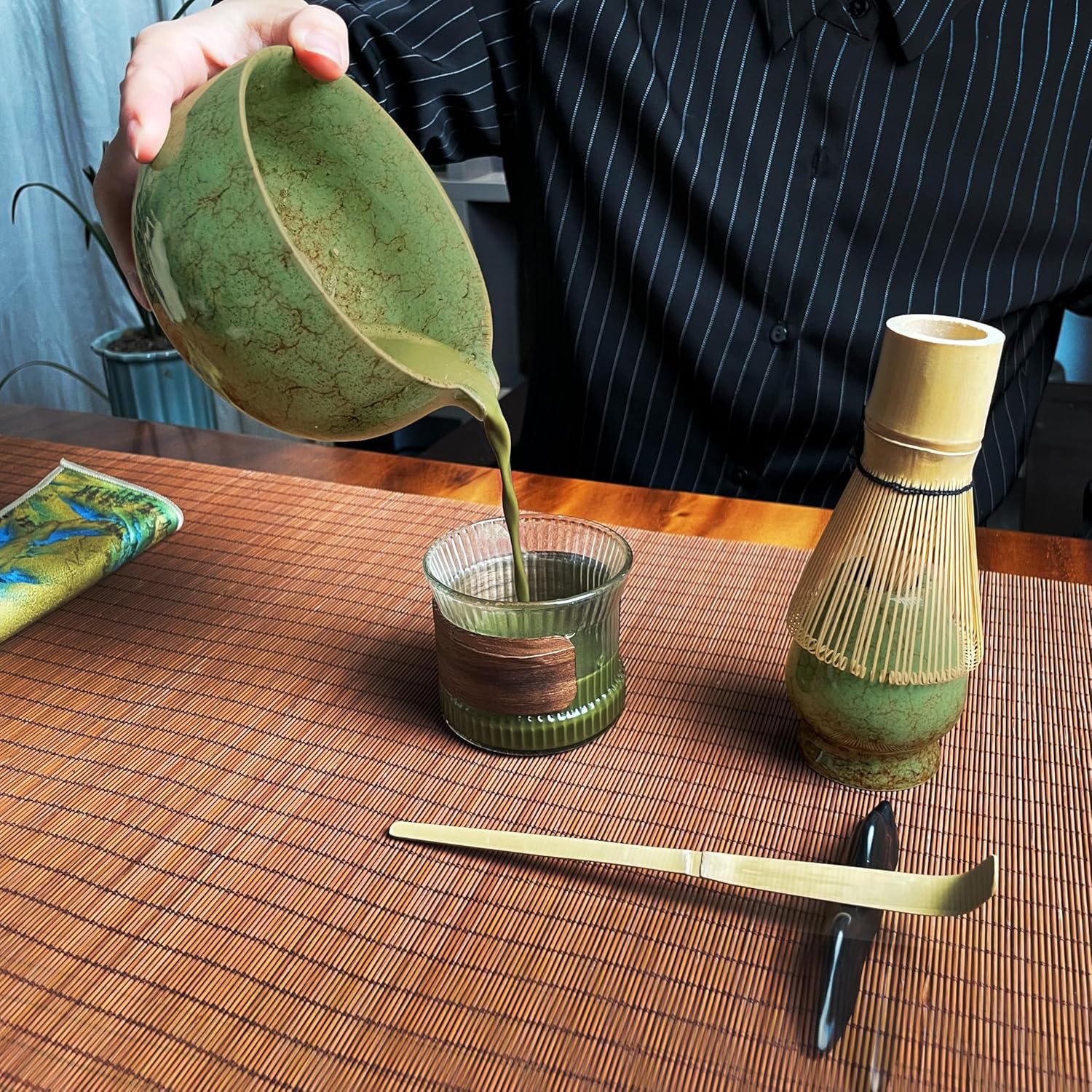 - ๐๐ก๐ ๐๐๐ซ๐๐๐๐ญ ๐๐๐ฉ๐๐ง๐๐ฌ๐ ๐๐๐ญ๐๐ก๐ ๐๐๐ ๐๐๐ญ :Embrace the essence of Japanese matcha experience with the perfect 7-piece matcha starter set.Contain:1*Ceramic Matcha Bowl 400 ml/13.5 oz, 1* Cermaic Whisk Stand(Chasen Holder), 1* Ceramic Scoop Stand, 1* Bamboo Whisk, 1* Bamboo Scoop (Chashaku),1* Cotton Tea Cloth, 1* Matcha Powder Sifter. Whether you're a matcha enthusiast or seeking to delve into the traditions of Japanese tea ceremony, this set caters to all your needs.