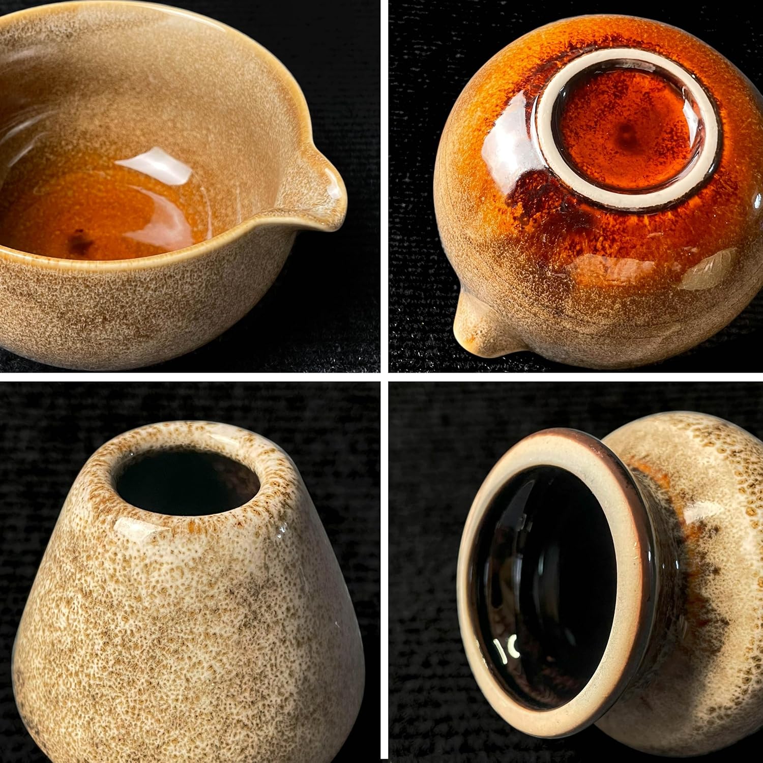 Matcha Tea Set (7pcs) - Matcha Whisk Set with Bowl, Whisk Holder, and Pouring Spout Bowl, Perfect Matcha Starter Kit for Tea Ceremony (Amber Sand)