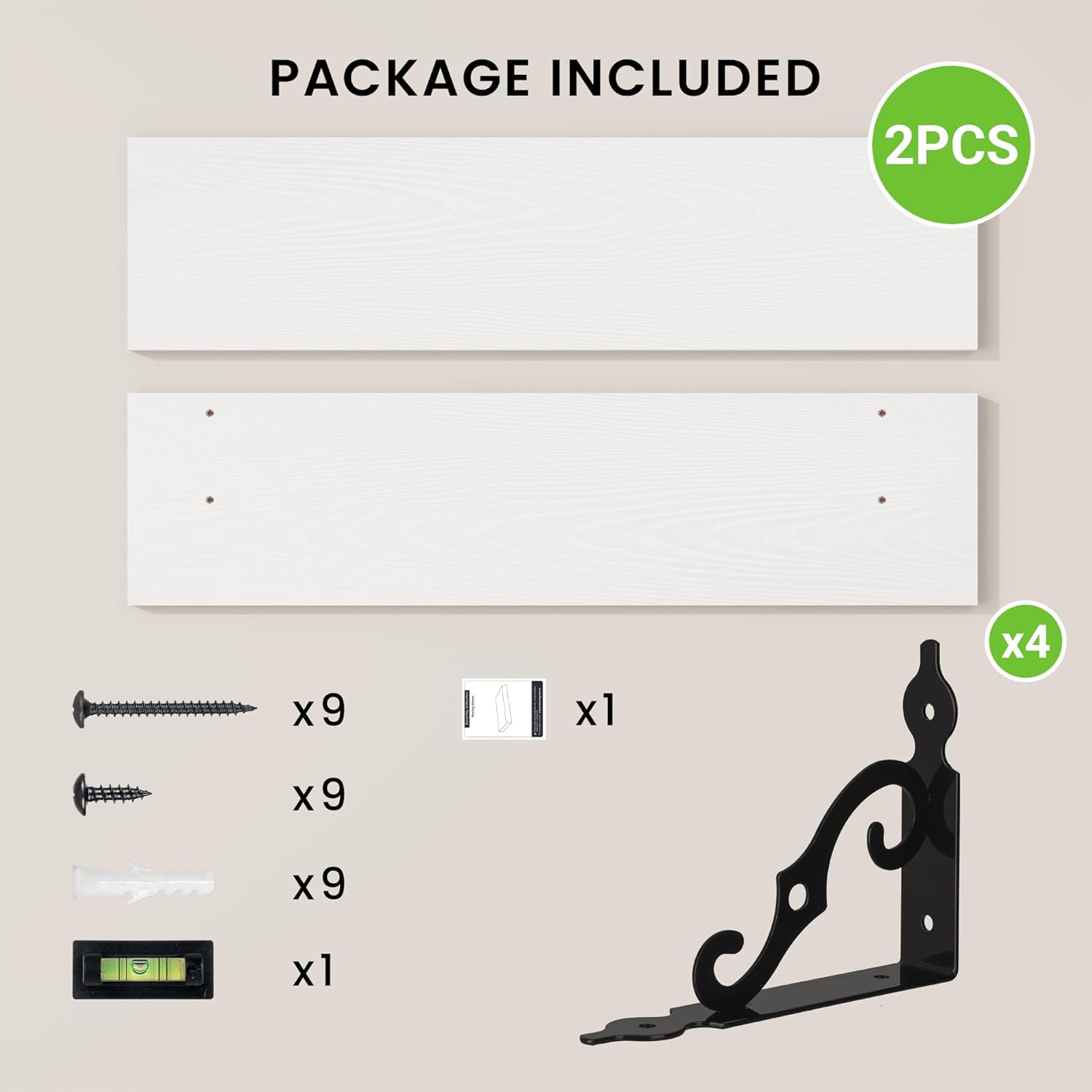 - Perfect Home Decor: This wood shelf fits rustic style, or vintage style home decor, rustic wood grain and exquisite S-shaped brackets will make your home full of modern and elegant romance. Our floating shelf makes full use of the wall, and let your room and bathroom look so cute