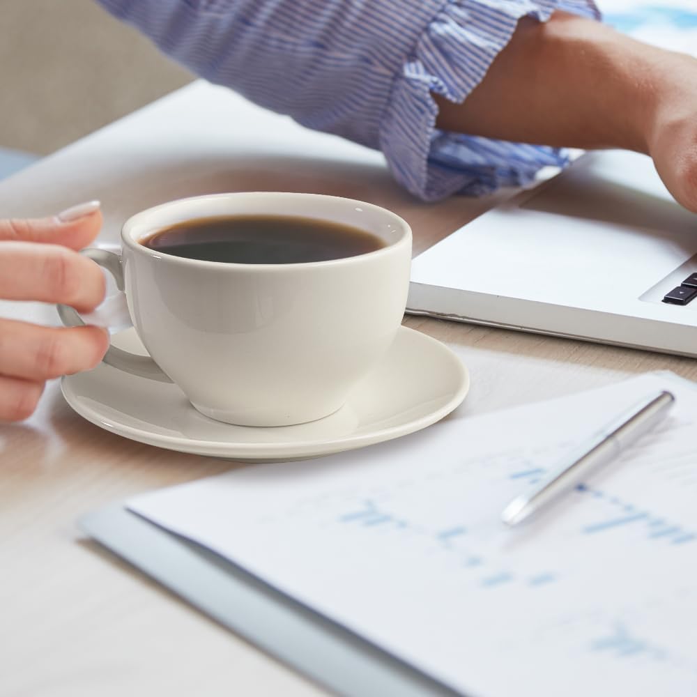 Porcelain Coffee Cup with Saucer 220ml/7.3oz for Cappuccino, Latte, and Tea, Elegant White