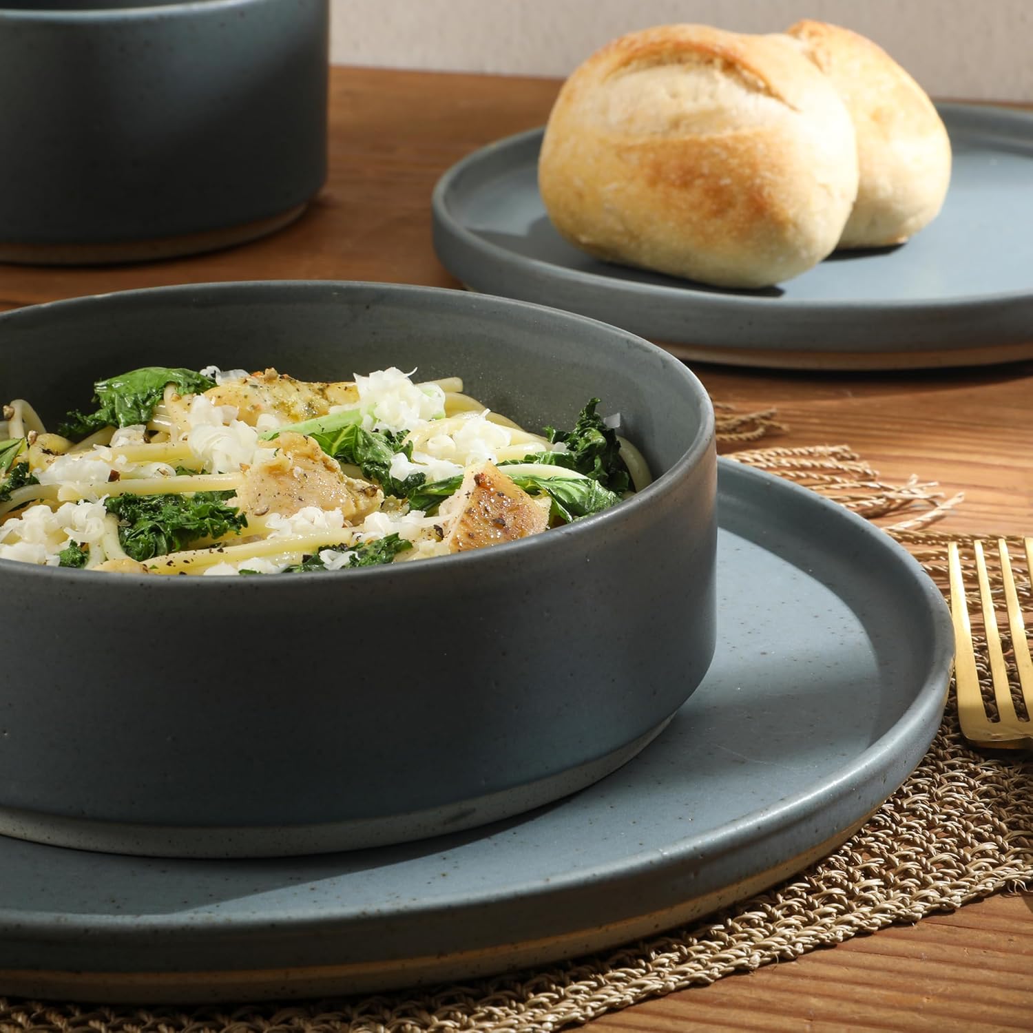 Gibson Elite Tatum Premium Porcelain Matte Reactive Glaze 16-Piece (Service for 4) Plates and Bolws Stackable Dishes Ceramic Dinnerware - Blue