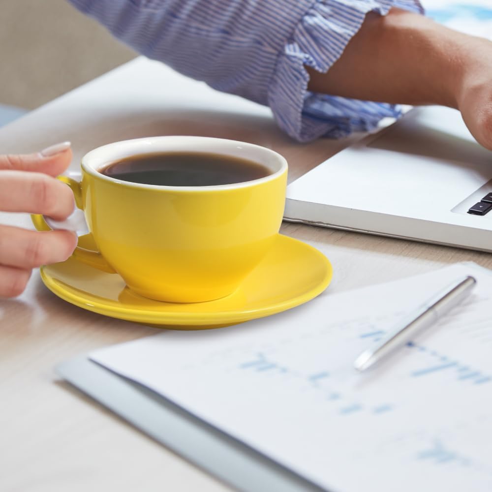 Porcelain Coffee Cup with Saucer 220ml/7.3oz for Cappuccino, Latte, and Tea, Yellow