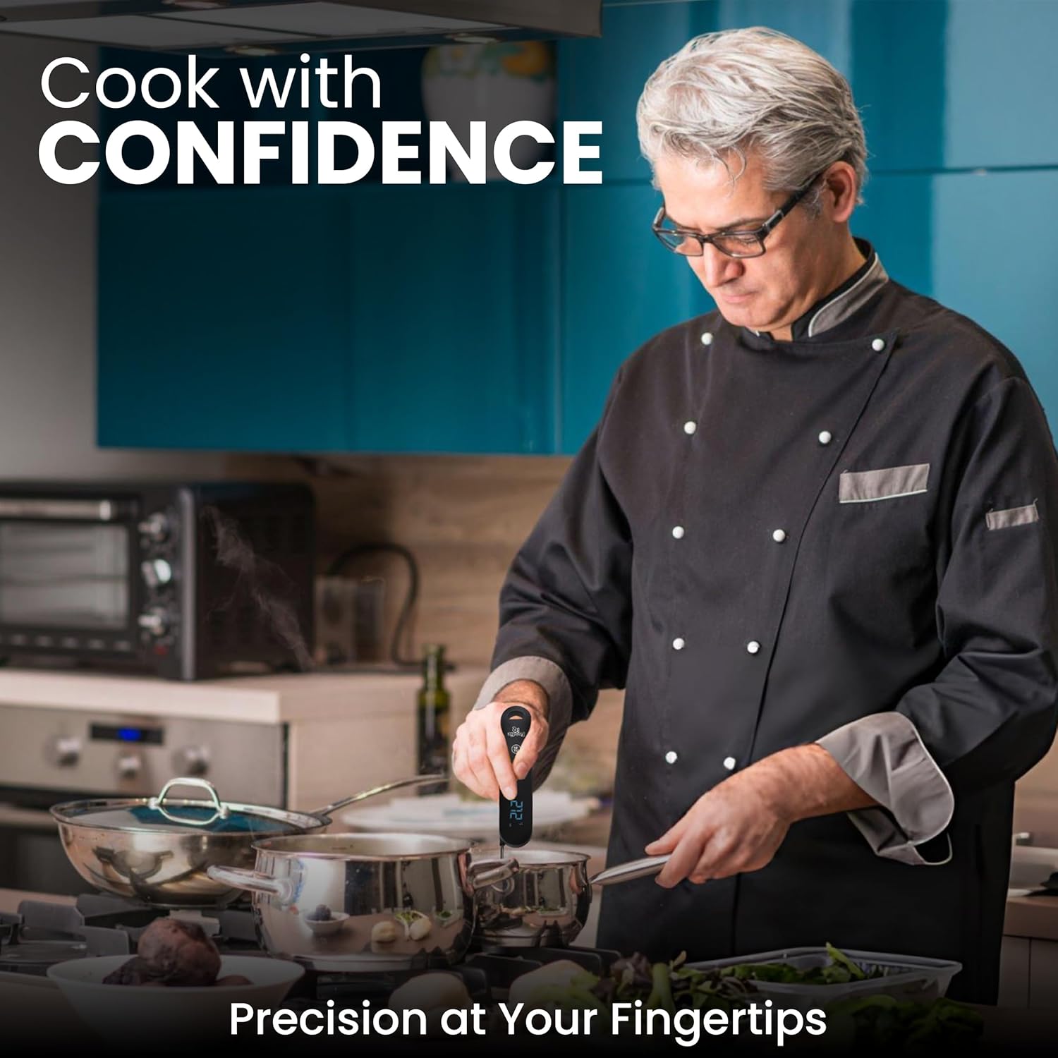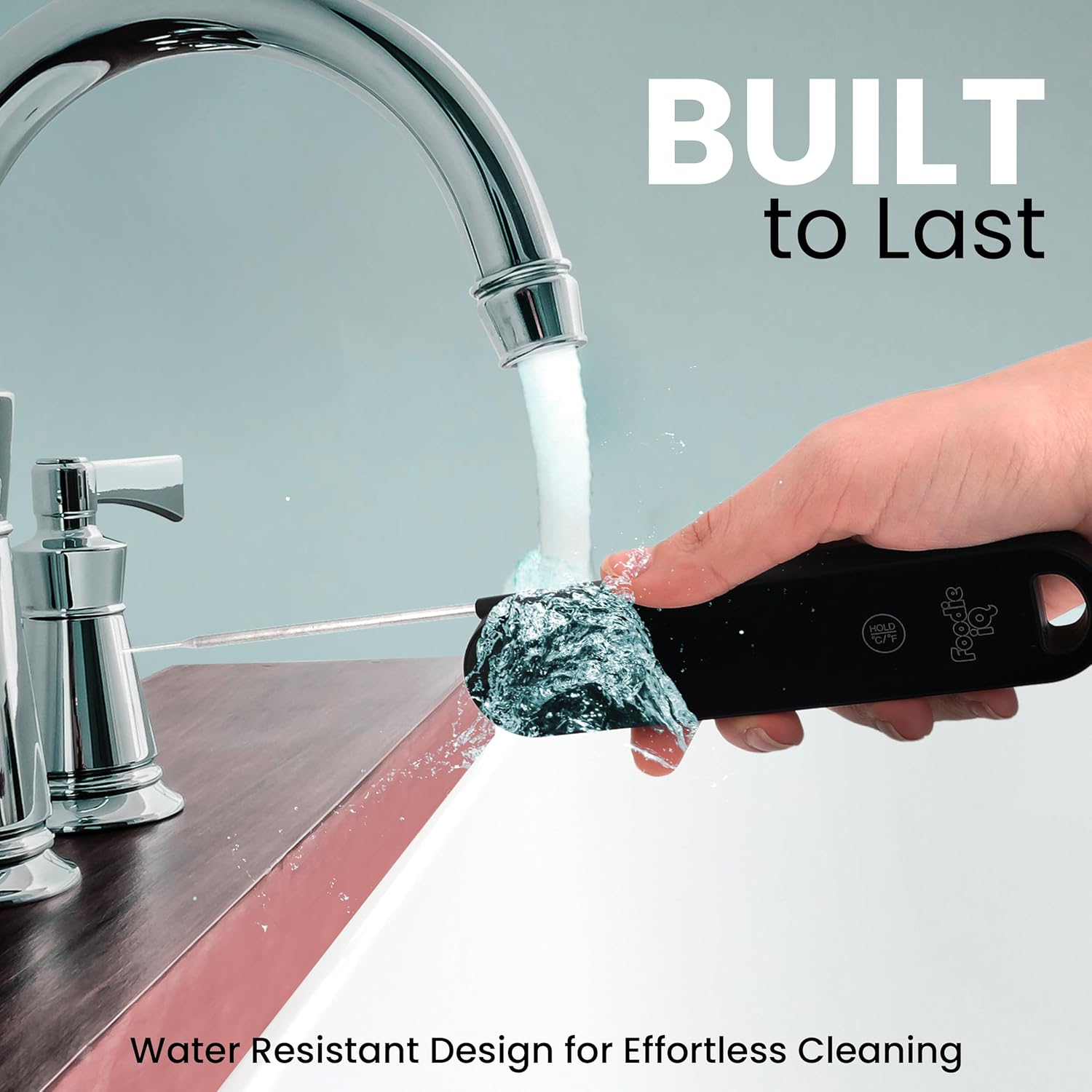- 𝗜𝗣𝟲𝟳 𝗪𝗮𝘁𝗲𝗿𝗽𝗿𝗼𝗼𝗳 & 𝗗𝘂𝗿𝗮𝗯𝗹𝗲 𝗗𝗲𝘀𝗶𝗴𝗻 | Built to handle busy kitchen days, spills, and splashes. Foodie IQ digital thermometer is easy to clean and withstands daily use, making it a dependable tool for any cooking enthusiast.