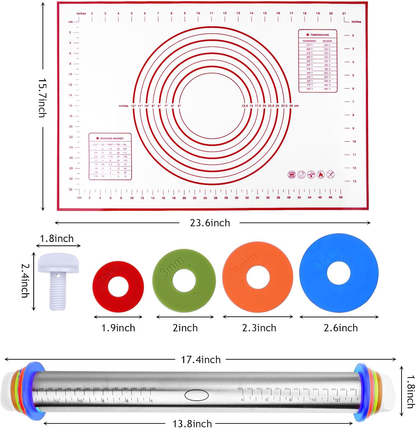 - 3.Measure Silicone Baking Mat: Amremsu Measuring Baking Mat Is Available In Both Inches And Centimeters (Approximately 24 X 16 Inches), Made Of High-Quality Silicone That Provides A Non-Stick Surface That Is Very Easy To Clean. The Mat Stays In Place On The Table And Does Not Wrinkle Or Slip While In Use, And Is Soft, Durable, And Will Not Wrinkle Or Fade. The Dough Mat Is Flexible, Stretchable, Easy To Fold And Store, Etc
