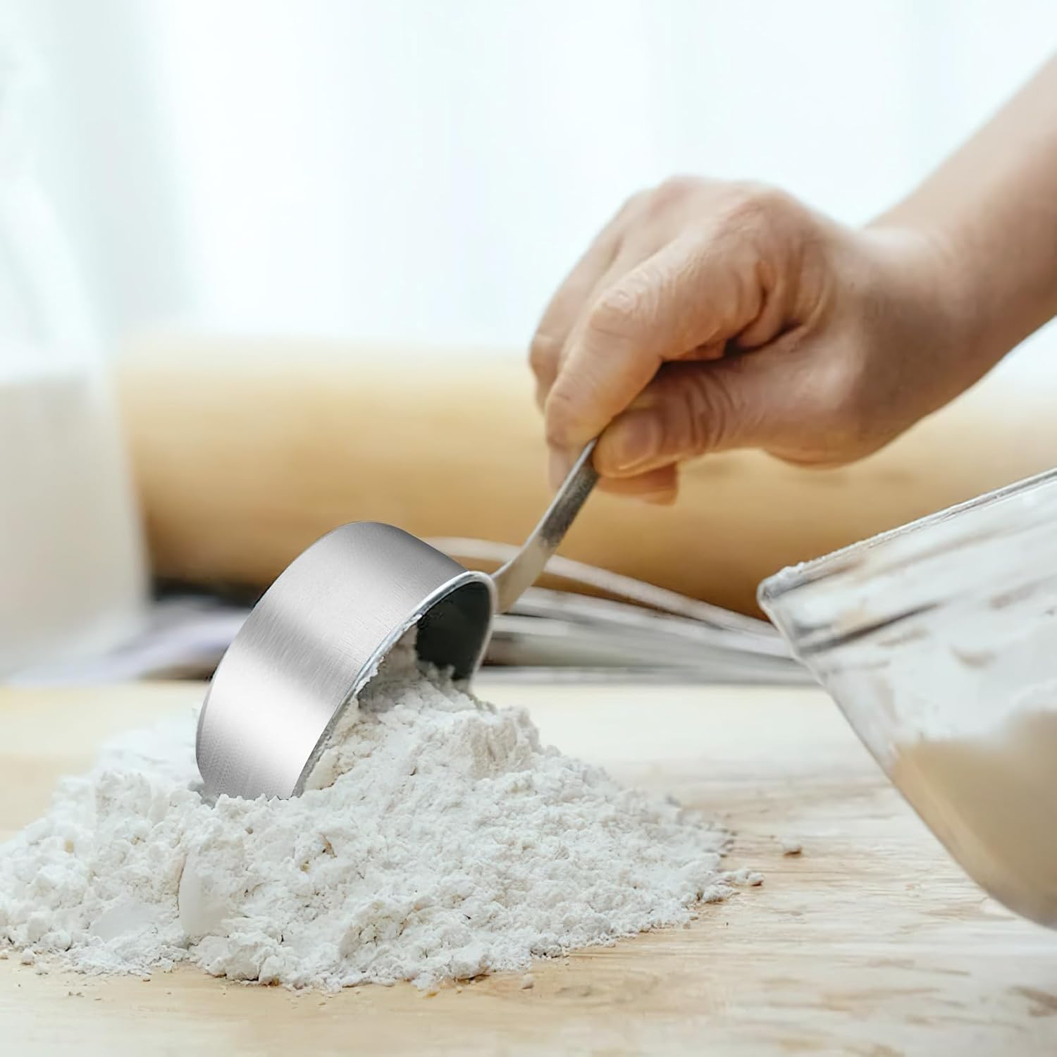 - 【ERGONOMIC DESIGN】Designed with an ergonomic handle, these stainless steel measuring cups offer a comfortable, slip-free grip. The handy hole in the handle allows for easy storage, saving space in your kitchen or workspace