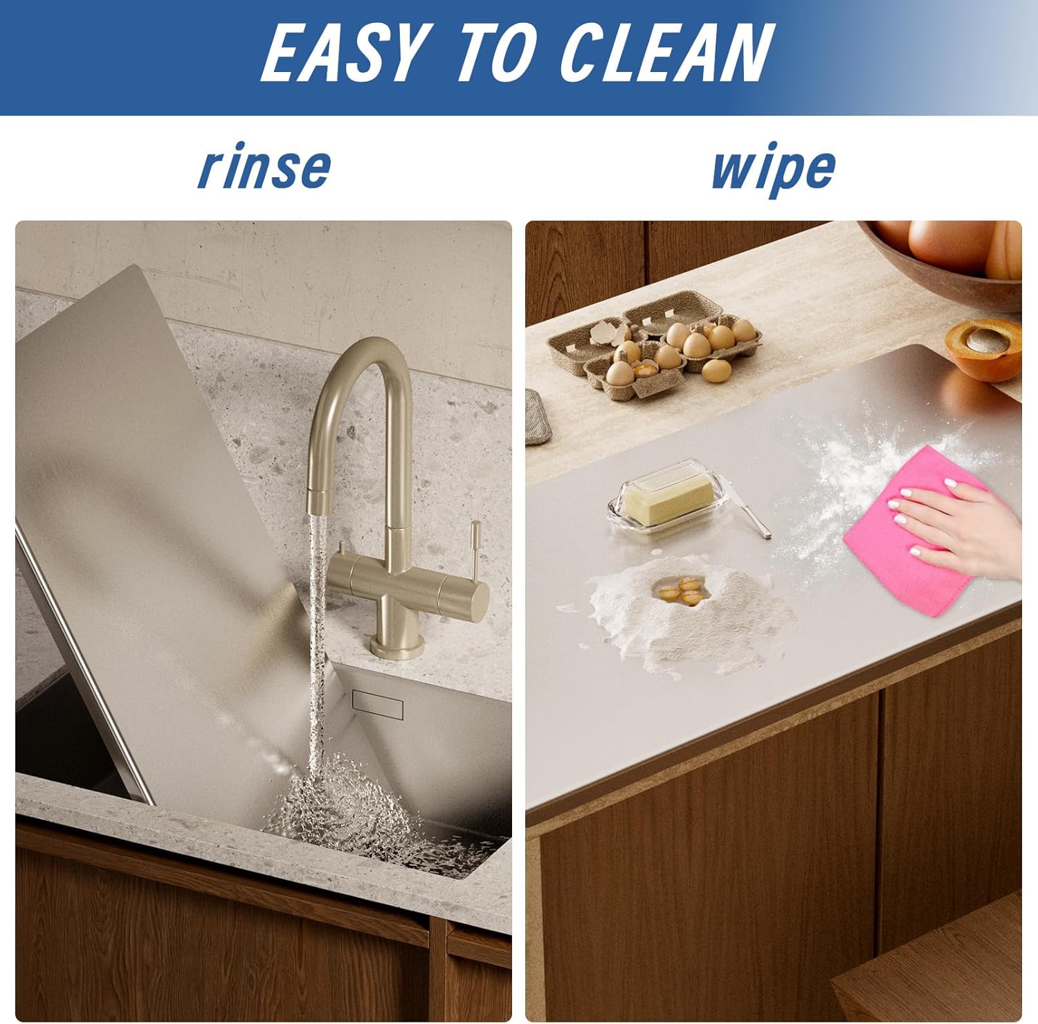 - EASY TO CLEAN: This heavy duty baking board is easy to clean and can be rinsed with water or wiped with a rag. The surface will not develop cracks and wood chips from long-term use. And there will be no odor residue when cutting fish on the chopping board